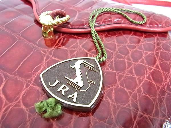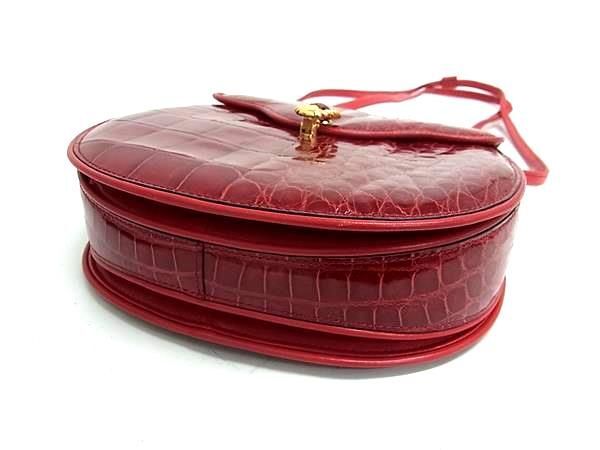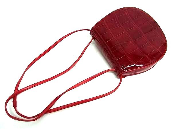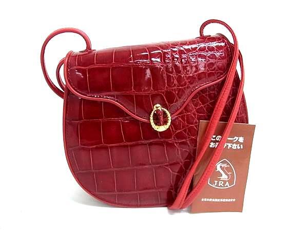 1円 ■極上■本物■JRA公認■美品■ クロコダイル クロスボディ ショルダーバッグ 斜め掛け ポシェット レディース レッド系 BS1250