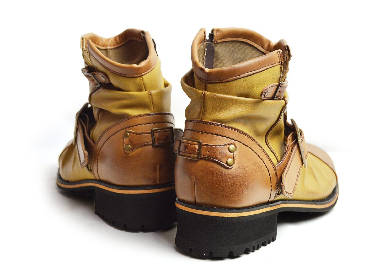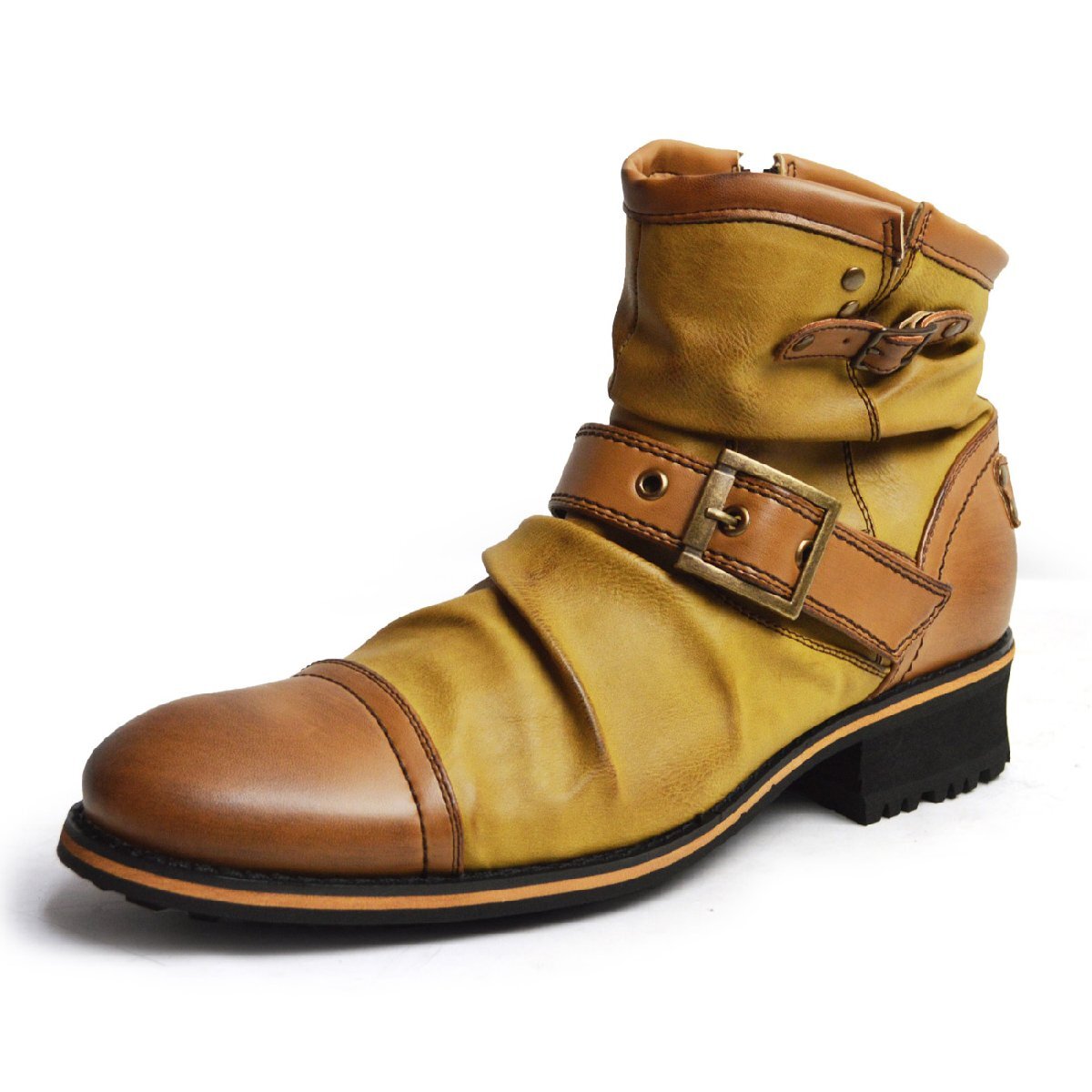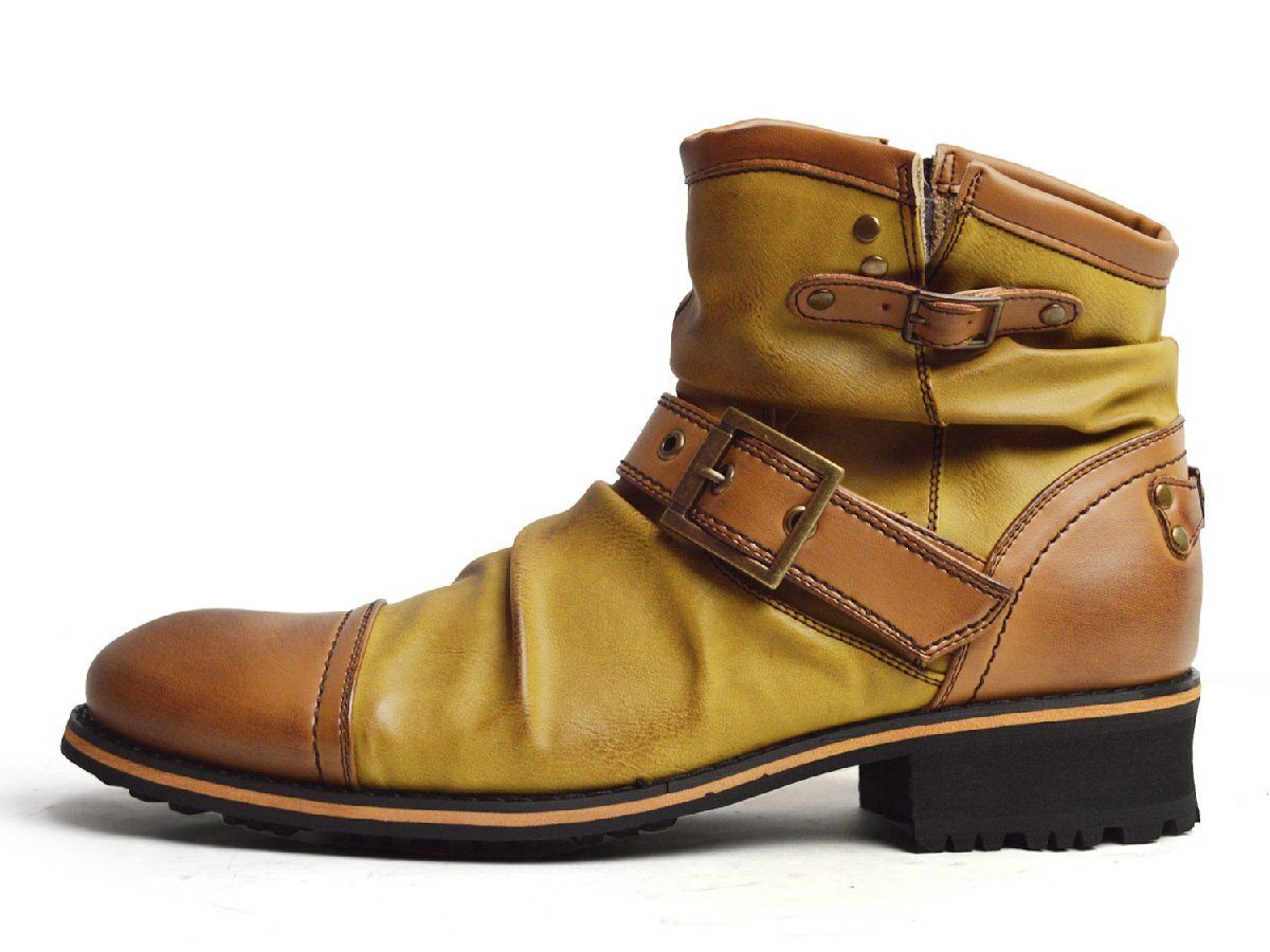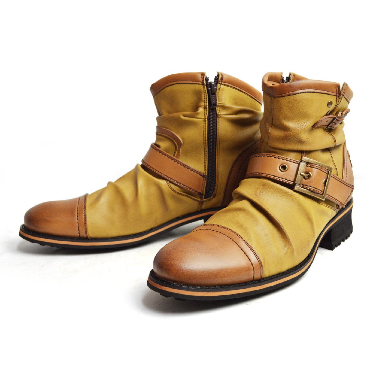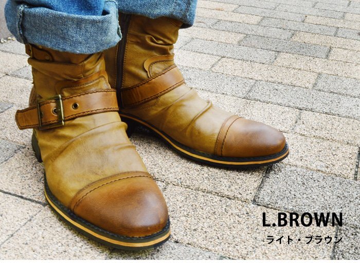 新品■28cm エンジニア ドレープブーツ サイドzip ジッパー ベルト バックル Men's ショート ブーツ ヴィンテージ スエード 男 靴 ze2468