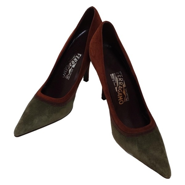 サルバトーレフェラガモ FERRAGAMO/SalvatoreFerragamo パンプス 6 C - ブラウン×ダークブラウン×カーキ レディース 美品 靴