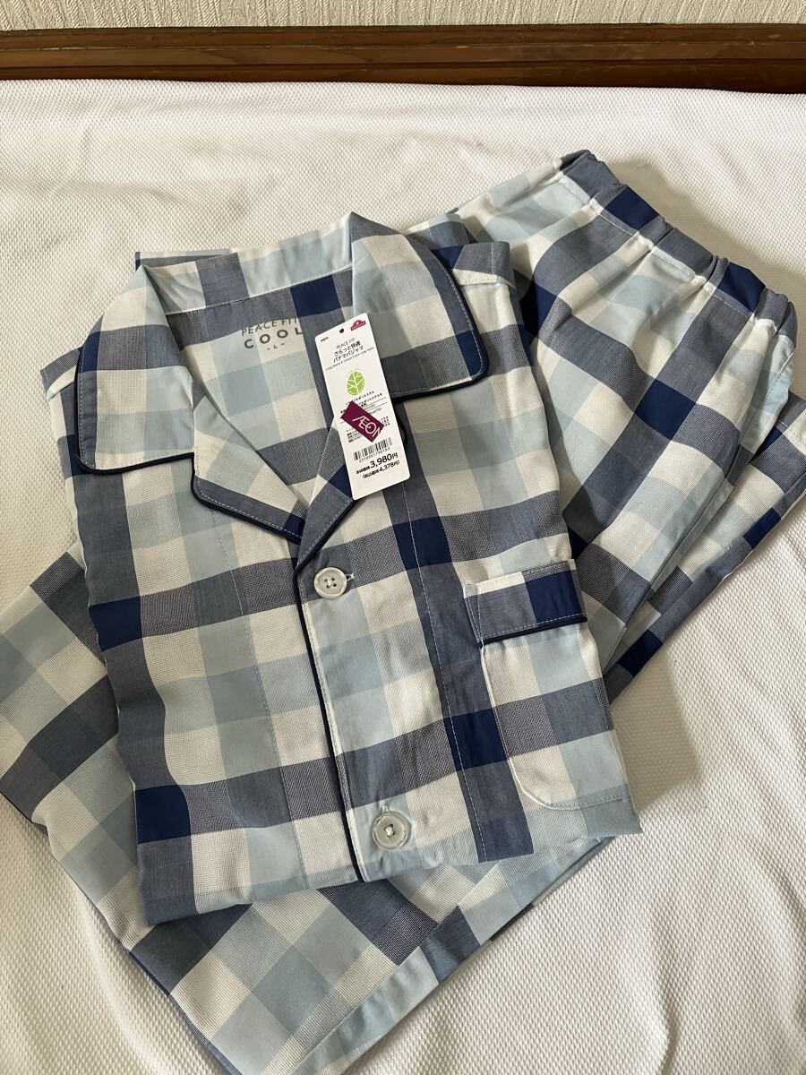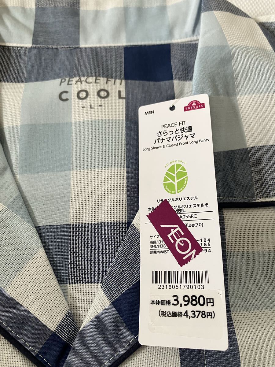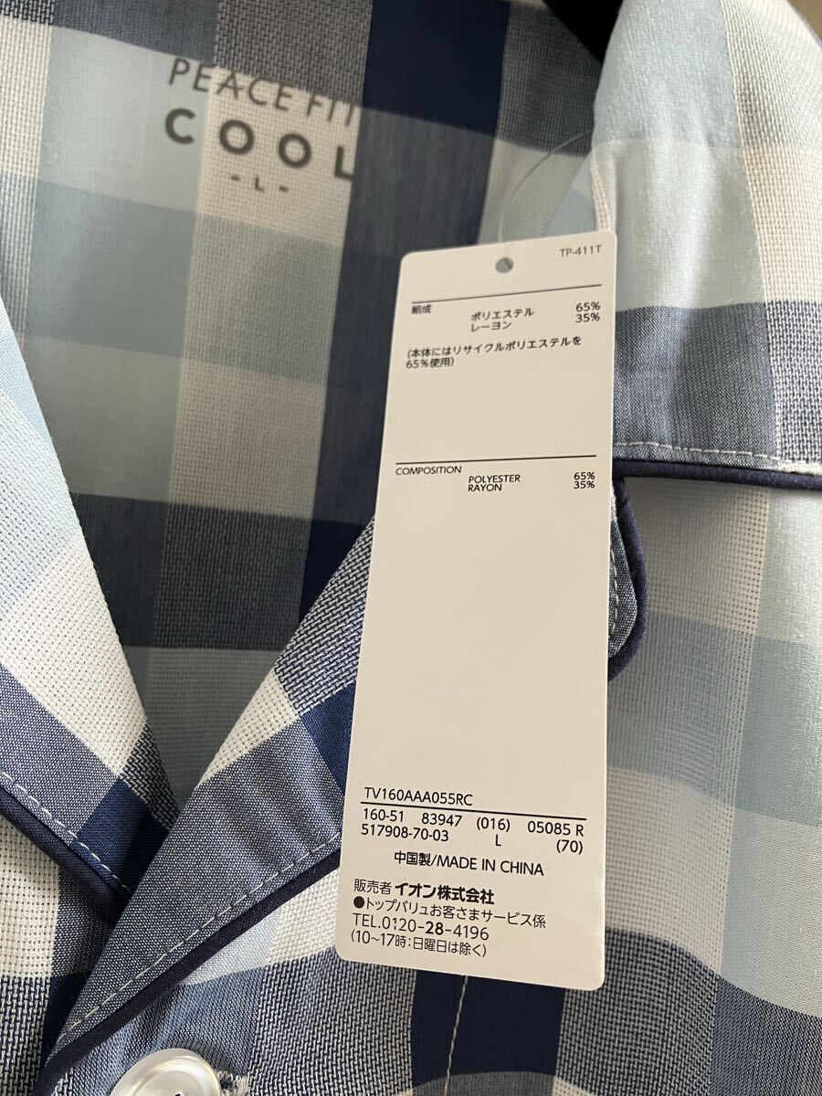 イオントップバリュのパジャマです。PEACE FITピースフィット。生地は薄手です。未使用ですが多少しわあり。【サイズ】L。【素材】ポリエステル65 綿35パーセント。【発送方法】ゆうパケットポスト。規定のサイズに収まるようなたたみ方をいたします。