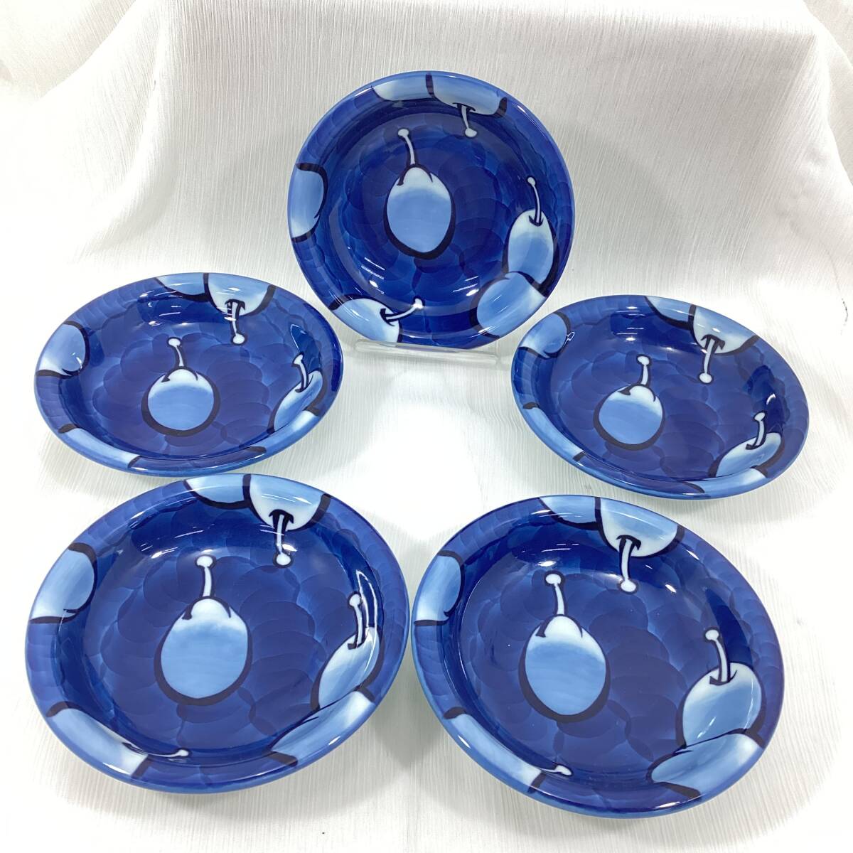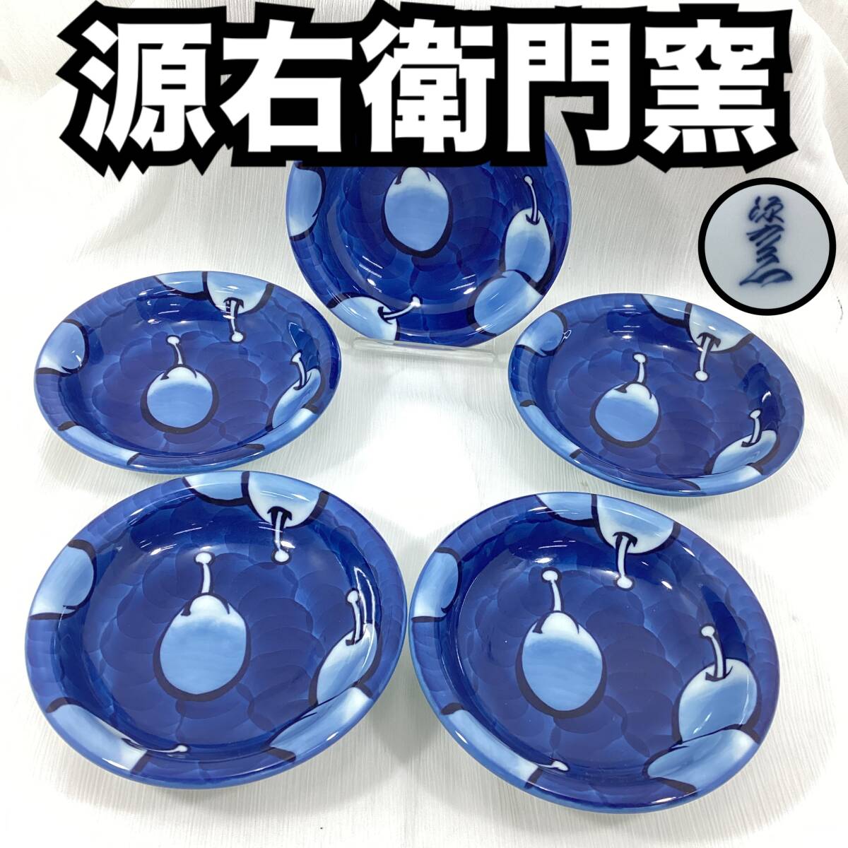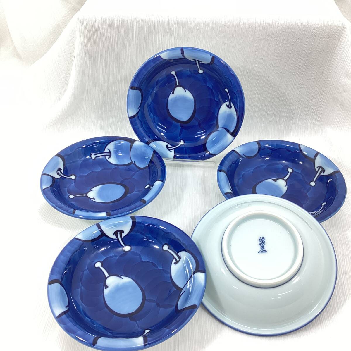 【未使用・保管品】源右衛門窯 染濃 有田焼 プルーン文 小皿 取皿 直径約12.5cm 5枚組 コバルト 磁器 食器 ゲンエモンガマ 【H1951】