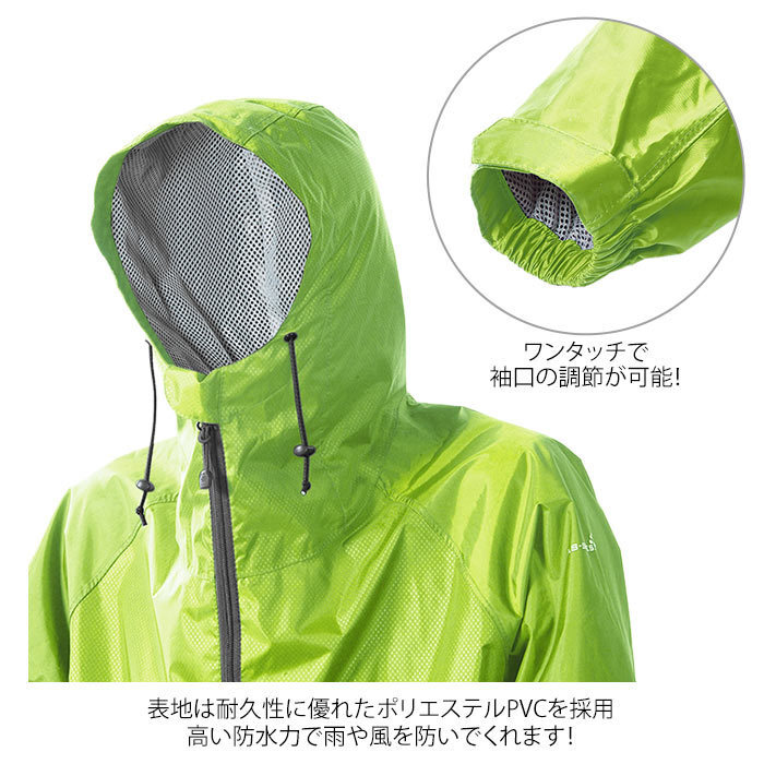 | 商品説明 | ・晴れても着こなせるレインジャケット ・表地は耐久性に優れたポリエステルPVCを採用し、10000mmH2Oの大雨にも耐えられる高い防水力で雨や風を防いでくれる ・裏地は、べたつきを軽減するメッシュタイプでさわやかな着心地が持続する ・ウエアと一体になったフードと絞り調節コードで、身体の中に水や雨に侵入をふせいでくれる。また、裾口も同じ絞り調節コードがある ・ジャケットは、脱ぎ履きが楽なフロントファスナータイプで、ファスナーの内側は水滴の侵入を防ぐフラップ付き ・また、縫製部分には防水加工、手差しポケットには水滴が入りにくいなど細かいところまで雨の侵入を防ぐ設計になっている |