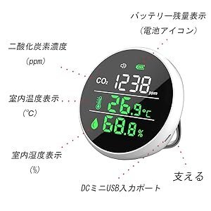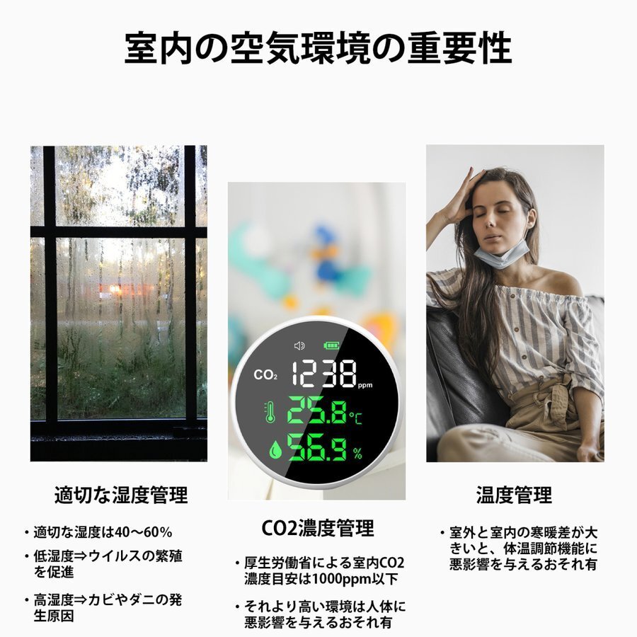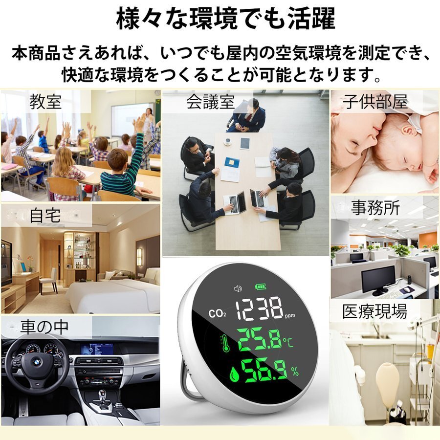 最新型 CO2測定器 3in1 二酸化炭素濃度計測器 リアルタイム 空気質モニター CO2濃度 湿度 温度測定 車用 事務所用 家庭用 042