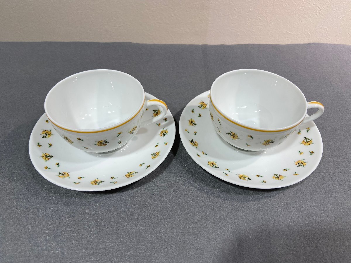 【RAYNAUD Limoges】 レイノー リモージュ 《ブーゲンビリア》 カップ&ソーサー 2pcs 白磁に黄色の花柄 食器 茶器 SY02-H82