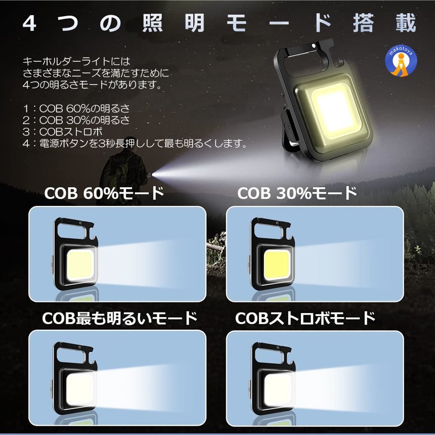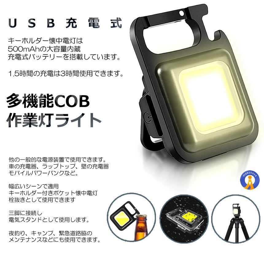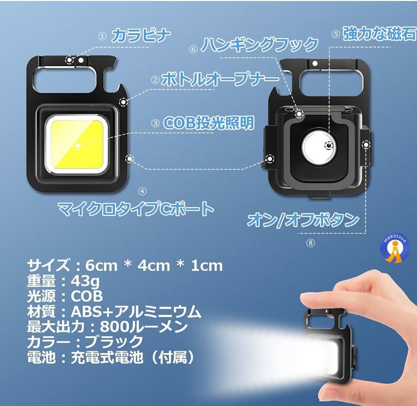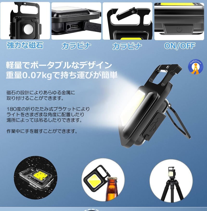 LEDライト 5個セット 作業灯 小型 キーホルダー式 800LM COBライト 栓抜き LED ミニ投光器 USB充電式 CCOBSR 444