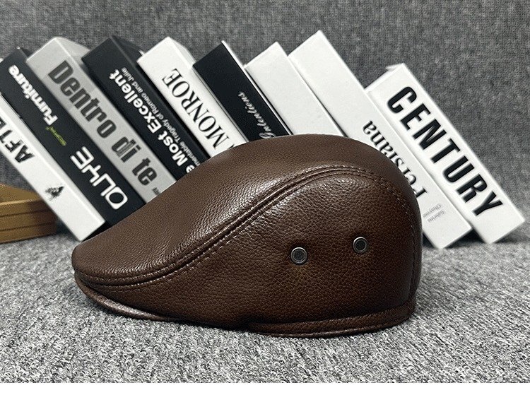 本革 耳あて付きハンチング帽子 天然牛皮 メンズ カジュアル 帽子 おしゃれ 防風/防寒 40代 50代 60代 ゴルフ 秋冬 コーヒー/L xhw0062