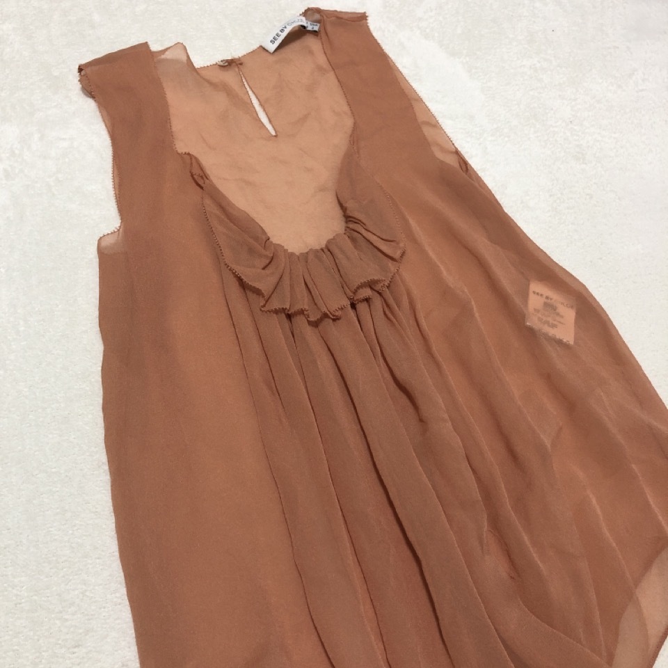 1円~ 60 A-10-74 SEE BY CHLOE シーバイクロエ シースルー ノースリーブ ブラウス ピンク シルク100% サイズ38 チュニック