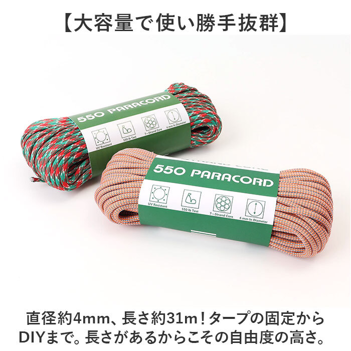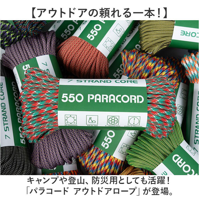 | 商品説明 | ・・【アウトドアの頼れる一本!】 ・キャンプや登山、防災用としても活躍!「パラコード アウトドアロープ」が登場。 ・【7芯仕様の高密度構造】 ・内部には7本の芯入り。しっかりとした作りで、安心感のある使い心地。 ・【耐久性・耐摩耗性に優れた仕立て】 ・岩や木との摩擦にも負けない強さ。長く使えるタフな設計。 ・【大容量で使い勝手抜群】 ・直径約4mm、長さ約31m!タープの固定からDIYまで。長さがあるからこその自由度の高さ。 ・【シーンを選ばず活躍する万能性】 ・アウトドアはもちろん、ガーデニングや日常使いにもおすすめなマルチアイテム。 ・【選べる楽しさ、豊富なカラバリ】 ・アウトドアにも日常にもなじむ多彩なカラー。好みや用途で選べる楽しさも魅力。 |