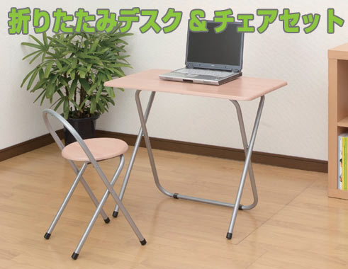 コンパクトサイズで機能的な、折りたたみデスクとチェアのセットです。
