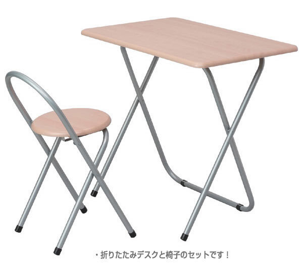 折り畳み式 テーブル椅子セット パソコンデスクセット 幅80cm 高さ71cm フォールディング テーブル チェアセット ナチュラル木目 83323