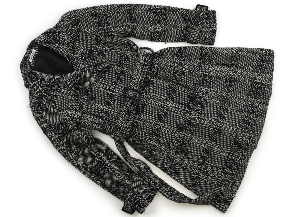 アクリルウール素材のツイード生地。裏地はポリ地。ベルト付き。ヨレ、毛羽立ち、使用感はありますがまだまだ活躍してくれそうです。