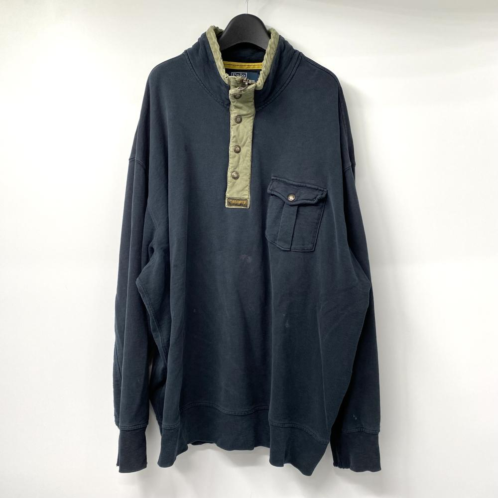 | 209999720520)90s RALPH LAUREN ハーフボタンフラップポケット スウェット サイズ3XB ブラック×カーキ ラルフローレン |