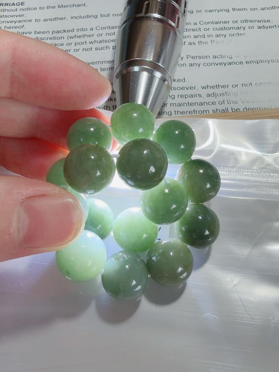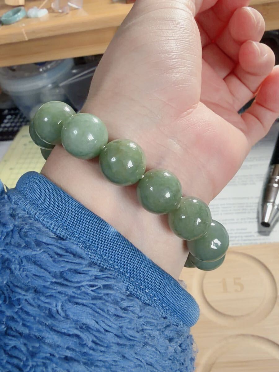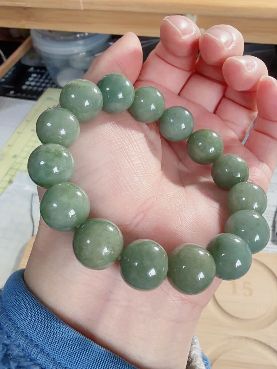 CS-0106 天然本翡翠《本物保証》油青緑 天然翡翠 ブレスレット16cm 天然石12.7mm一点物 希少 縁起物 お守り ミャンマー パワーストーン