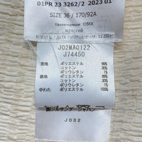 ジルサンダー JILSANDER スカート サイズ36 S 01PR233262 - アイボリー レディース ひざ丈/フリル/ウエストゴム 美品 ボトムス
