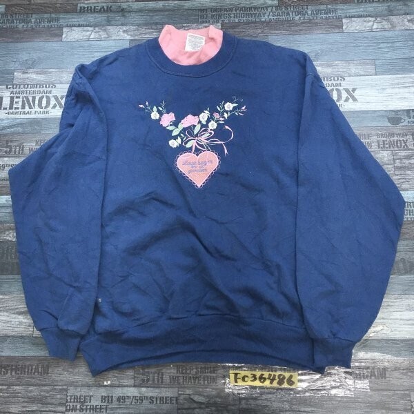 JERZEES ジャージーズ レディース USA製 裏起毛 花刺繍 レイヤード トレーナー 大きいサイズ XL 青 です。