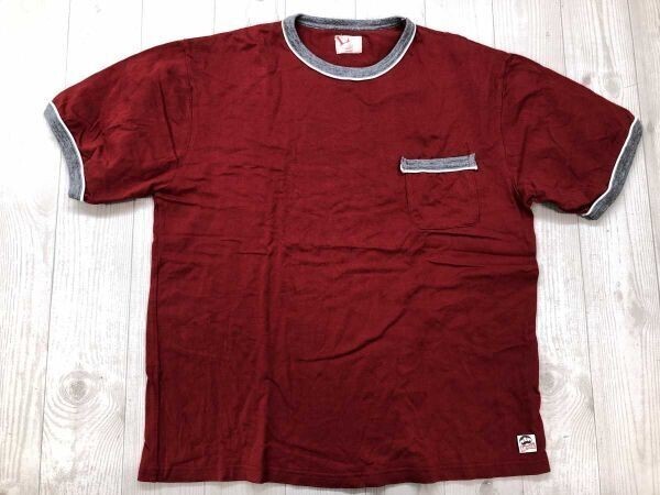 METEORA アメカジ アメカジ ワーク ストリート ワンポイント 胸ポケット トリム リンガー 半袖Tシャツ メンズ コットン100% L 赤 です。