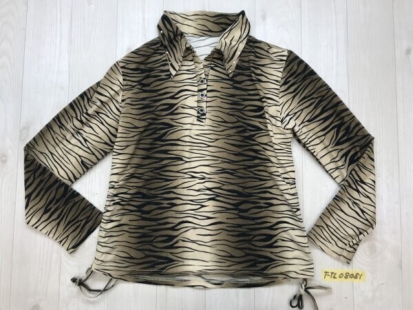 レディース アニマル柄 オープンカラー ストレッチ カットソー 茶黒 です。