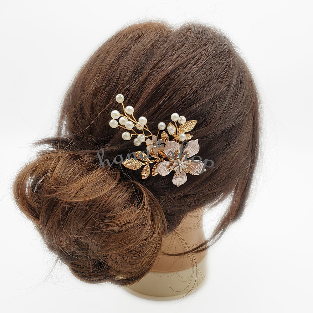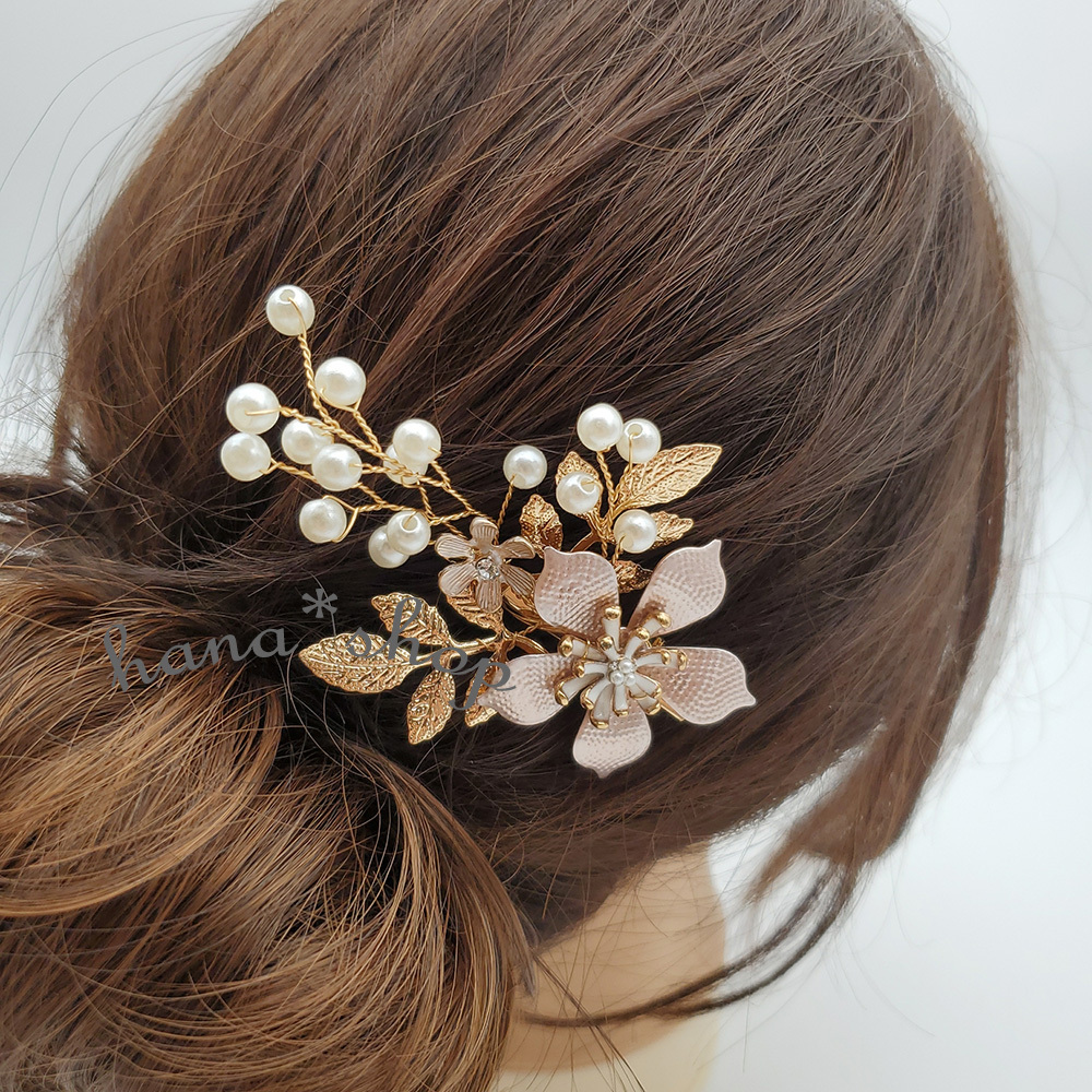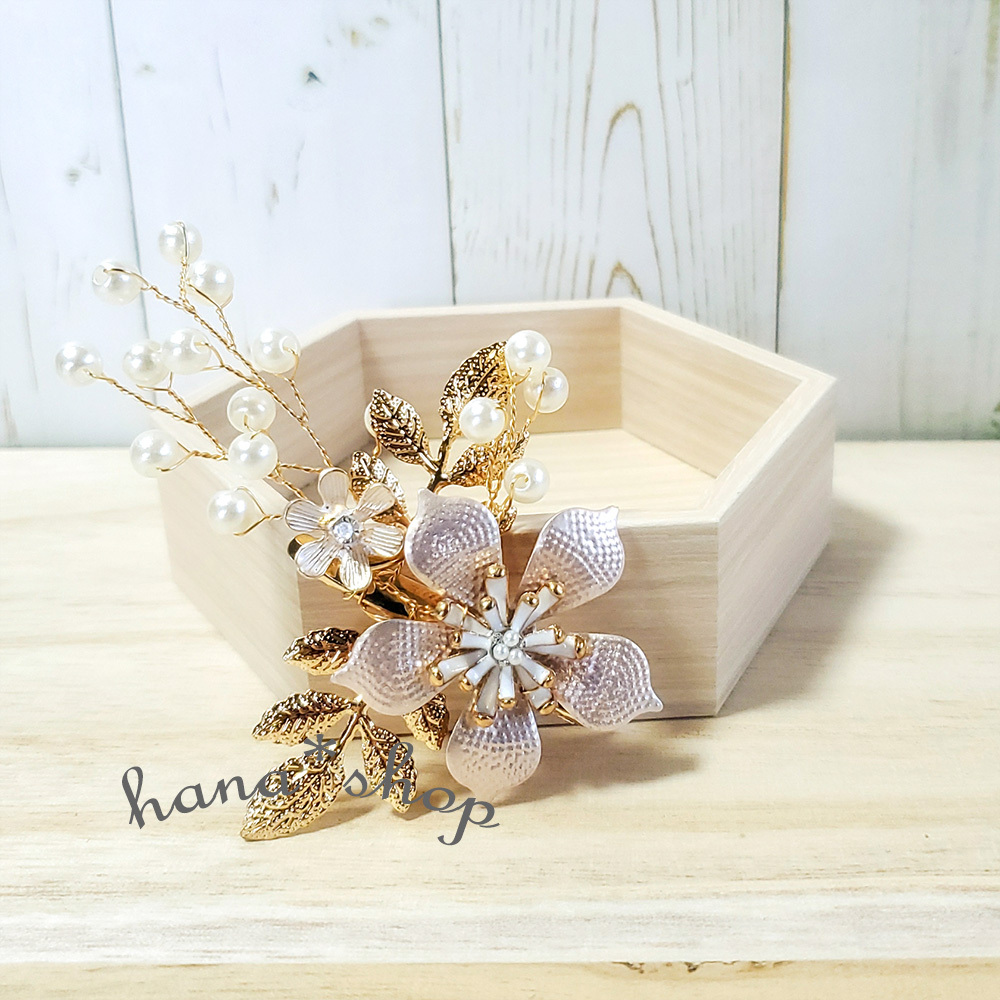 ビーズとパールを使用したお花をモチーフとした髪飾り