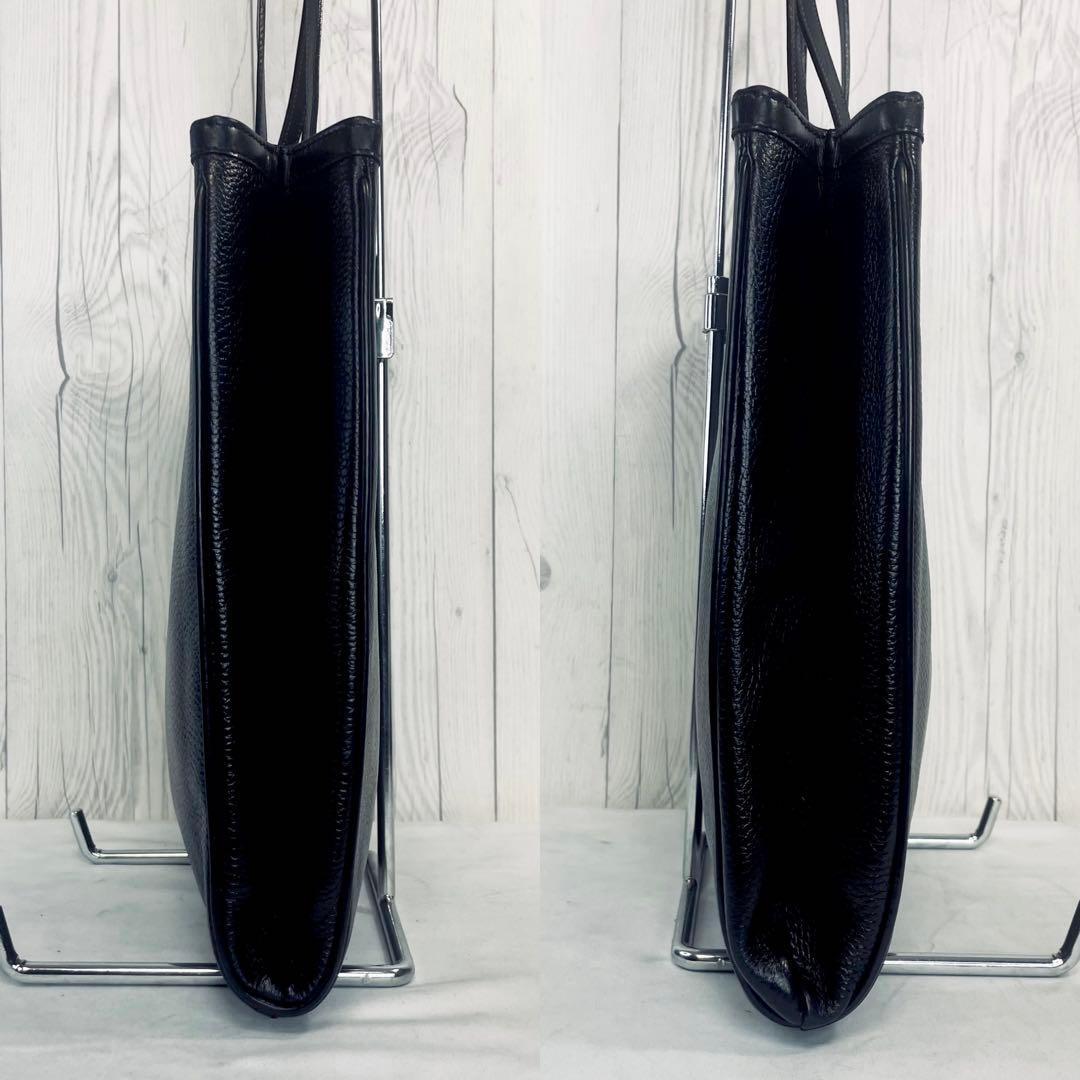 しっかりしたレザー素材で、A4、ノートパソコン(13インチ)なども入るサイズで肩掛けもでき普段使いに使いやすいサイズです。