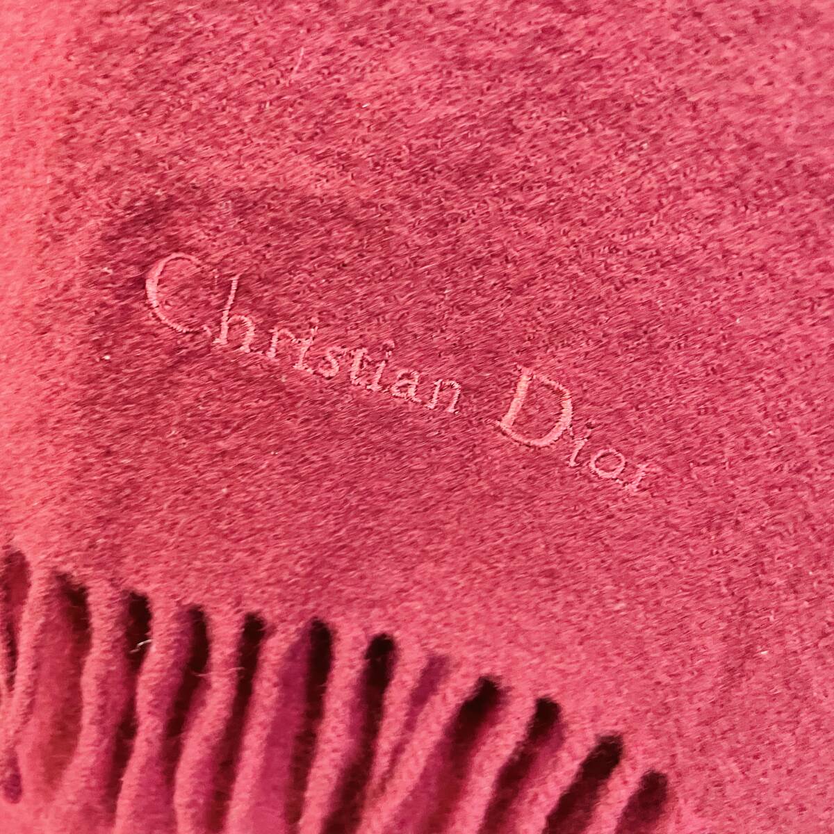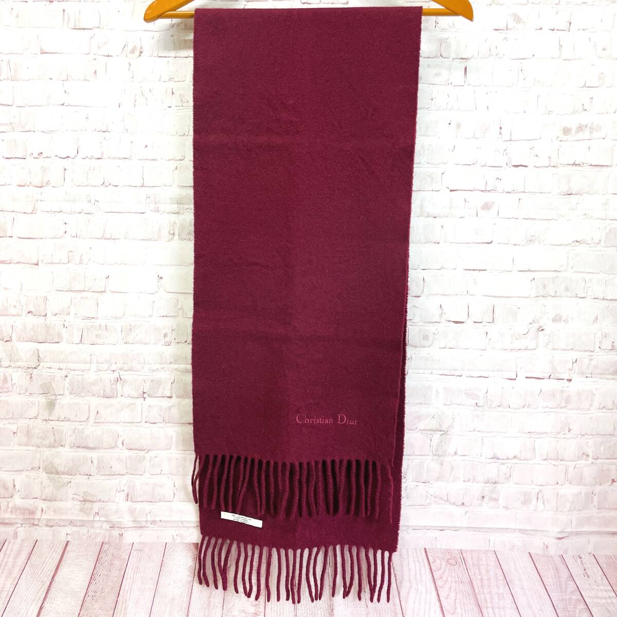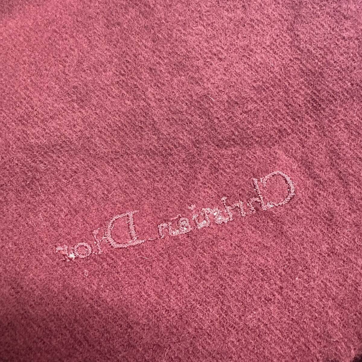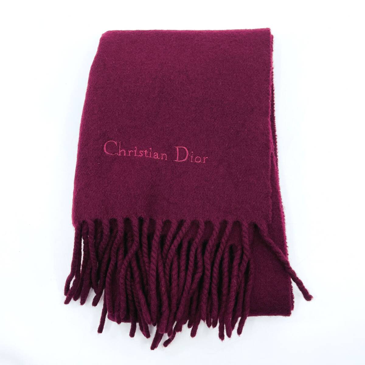Christian Dior クリスチャンディオール ウール100% マフラー ボルドー系 無地 シンプル ロゴ刺繍 イタリア製 毛 LAMBSWOOL ラムウール