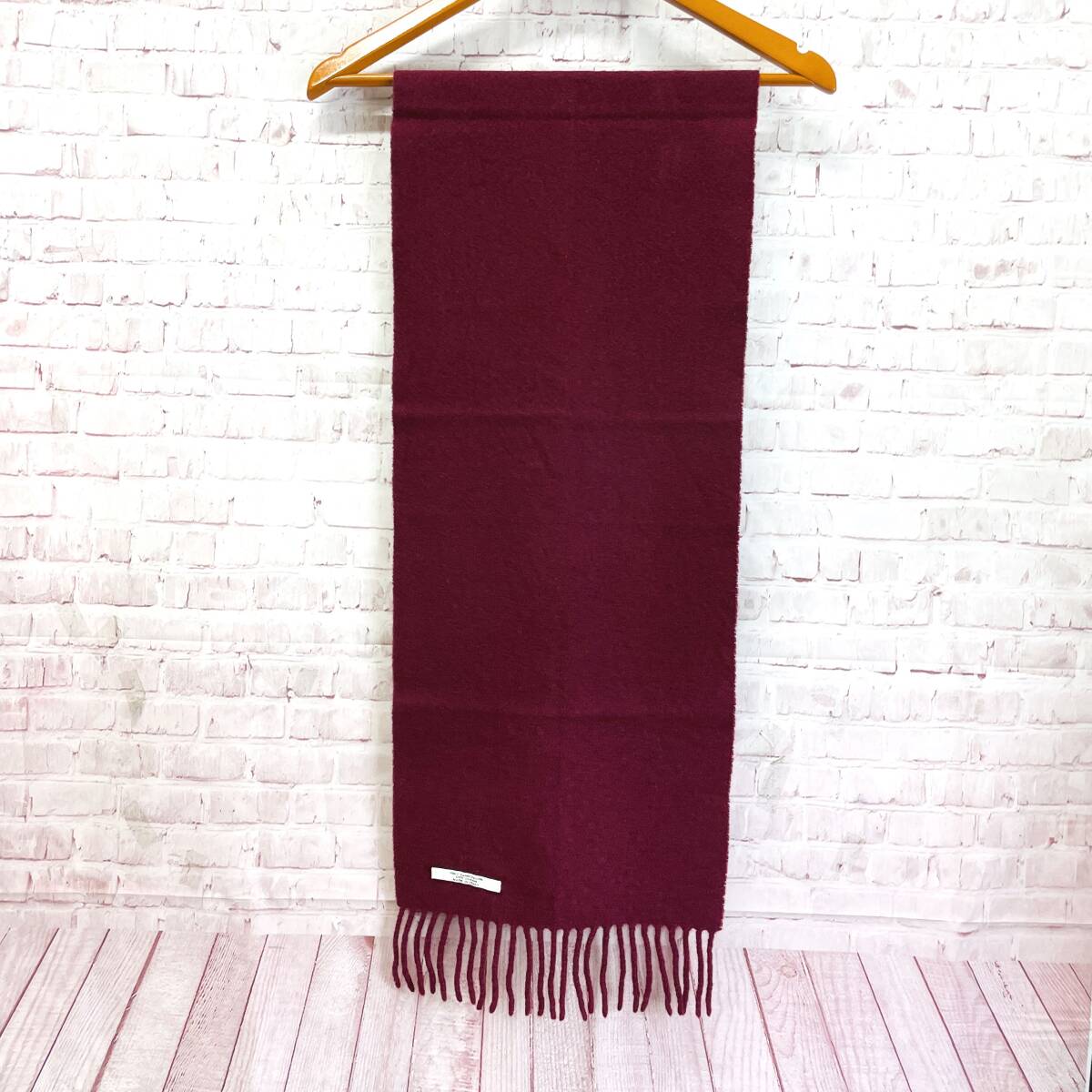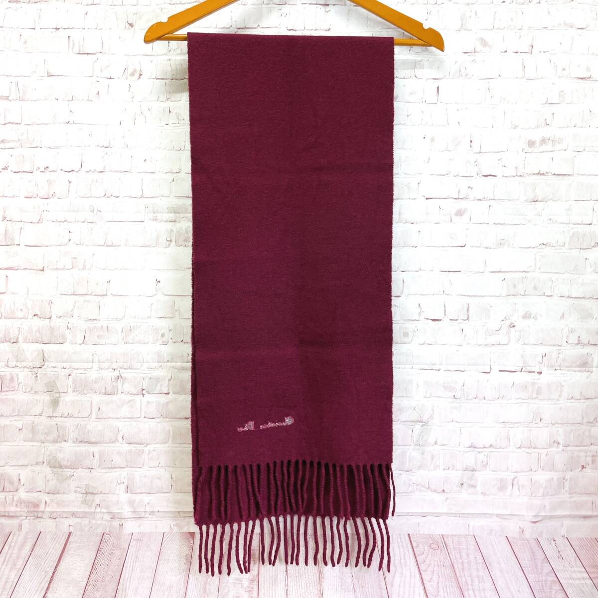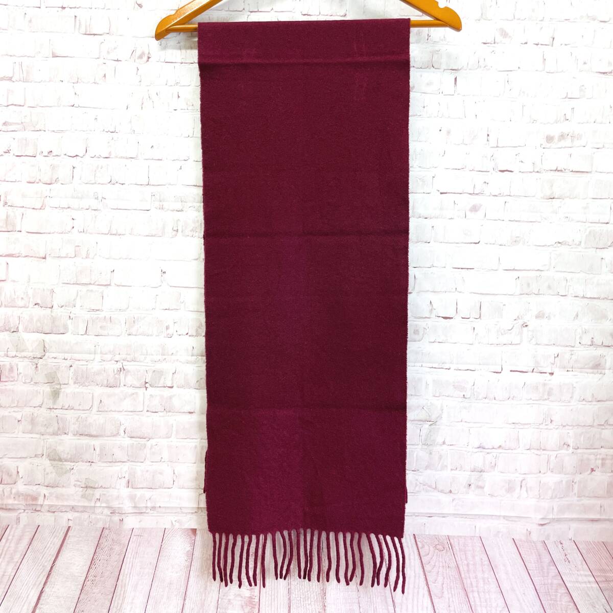 ウール100% マフラー ボルドー系 無地 シンプル ロゴ刺繍 イタリア製 毛 ユニセックス LAMBSWOOL ラムウール