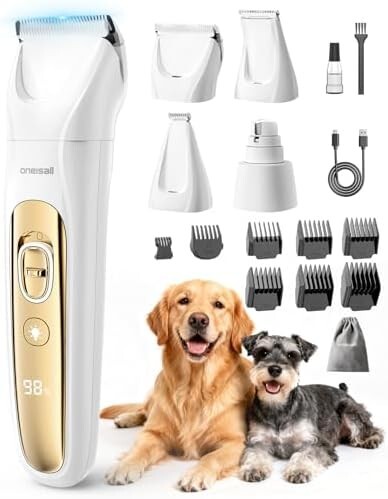 【パッケージ内容】oneisall の犬 電動バリカンには、標準的な犬用トリマー刃、犬の足用バリカン刃アタッチメント、犬の毛用バリカンの湾曲刃、犬の爪研磨器、長さの異なる 8 つのガイドコーム、TYPE-C 充電ケーブル、そしてメンテナンス用のオイルが含まれています。