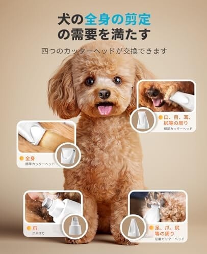 • 【 ペット全身用のPro犬 バリカン】自宅で愛犬の毛を簡単にトリミングすることができます。 柴犬、プードル、チワワ、ティードル、ポメラニアン、ミニチュアシュナウザー、マルチーズなどの犬にお勧めです。 当社の 4in1 のペット用バリカンには、標準的な犬用電動トリマー、犬の足用トリマー刃、犬の爪研磨器、そして精密な静音型の犬 バリカンの湾曲刃ヘッドが含まれています。簡単にアタッチメントを切り替えるだけで、1 つのキットで 4 つの製品の機能を得ることができます。