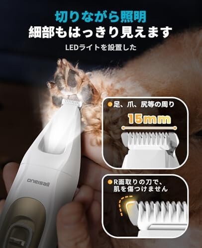 【新品送料無料】oneisall Pro 犬用バリカンプロ用 安全設計 LEDライト付き 猫 美容師用 初心者用 犬 バリカン2000mAh 低騒音 4種類替刃