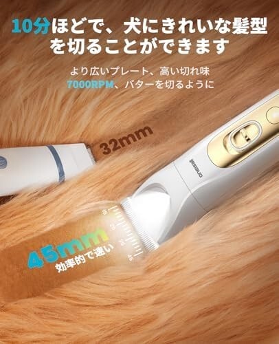 【 迅速なトリミングで美容時間を短縮】市場に出回っている一般的な小型犬用美容キットは、標準的な刃が小さく、モーターの回転数が 5000RPM ということから、毛を切るのに苦労し、美容に長い時間がかかります。oneisall は顧客体験に力を入れ、小型犬用バリカンの刃幅を 45mm に拡大してより広いカット範囲を実現し、モーターの回転数を 7000RPM にアップグレードしてカット性能を向上させ、美容時間を短縮しています。