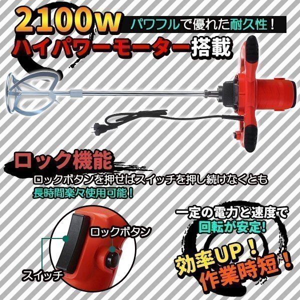 かくはん機 電動 攪拌機 2100W 6速調整 ハイパワー ミキサー セメント コンクリート ハンドミキサー コンクリートミキサー モルタル