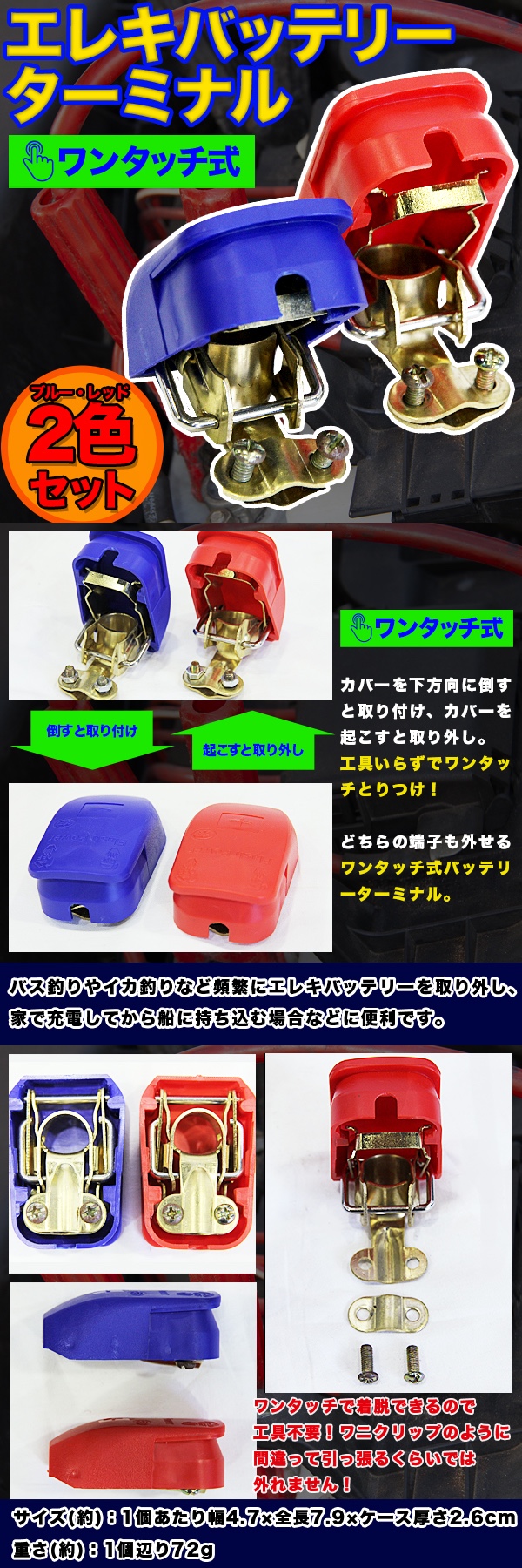 ★送料込 エレキバッテリーターミナル +-2個セット ワンタッチ式 マリン キャンピングカー 多用途 車 カー用品 バス釣り イカ釣り