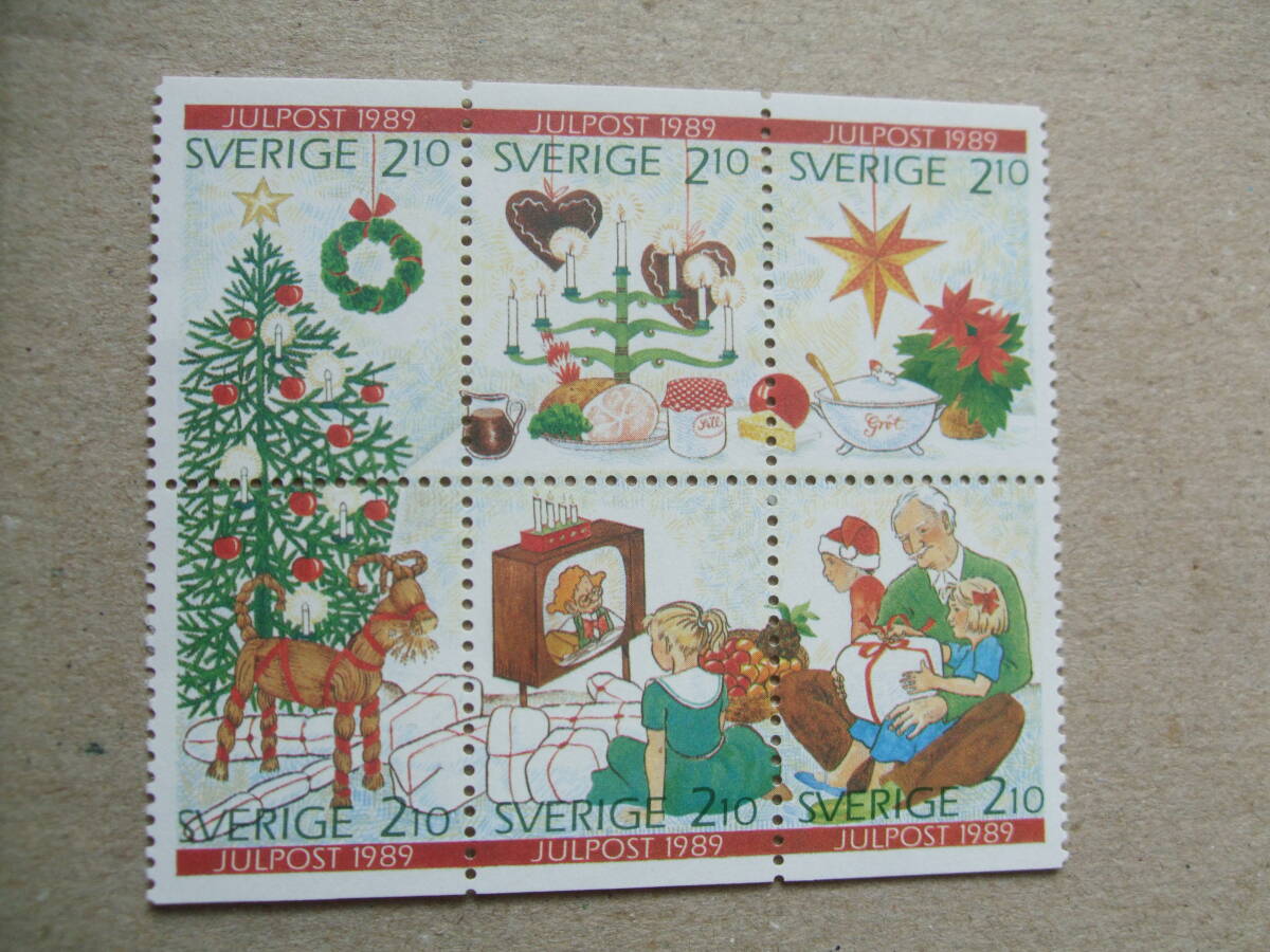 スウェーデン 1989年 クリスマス切手 6種ブロック完 未