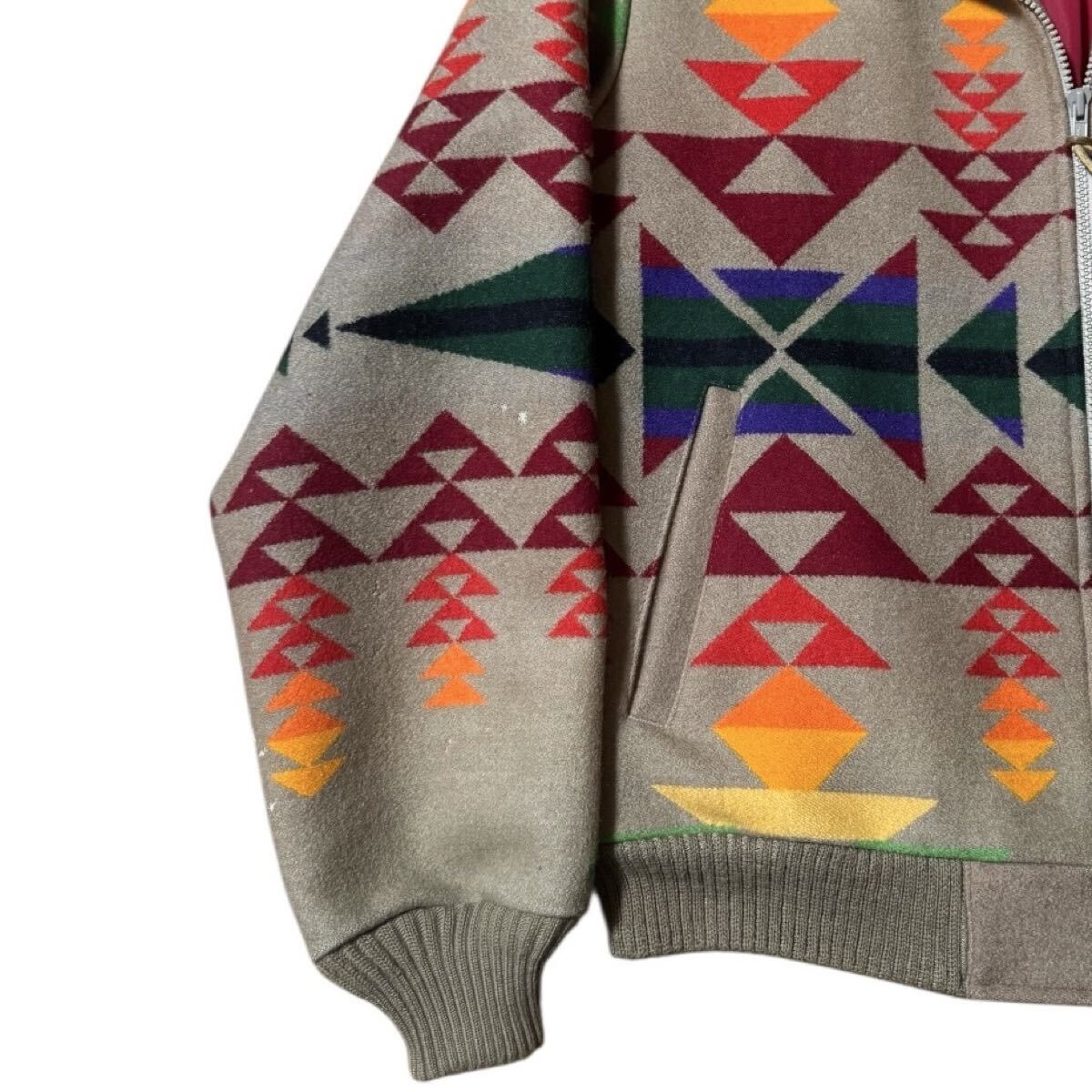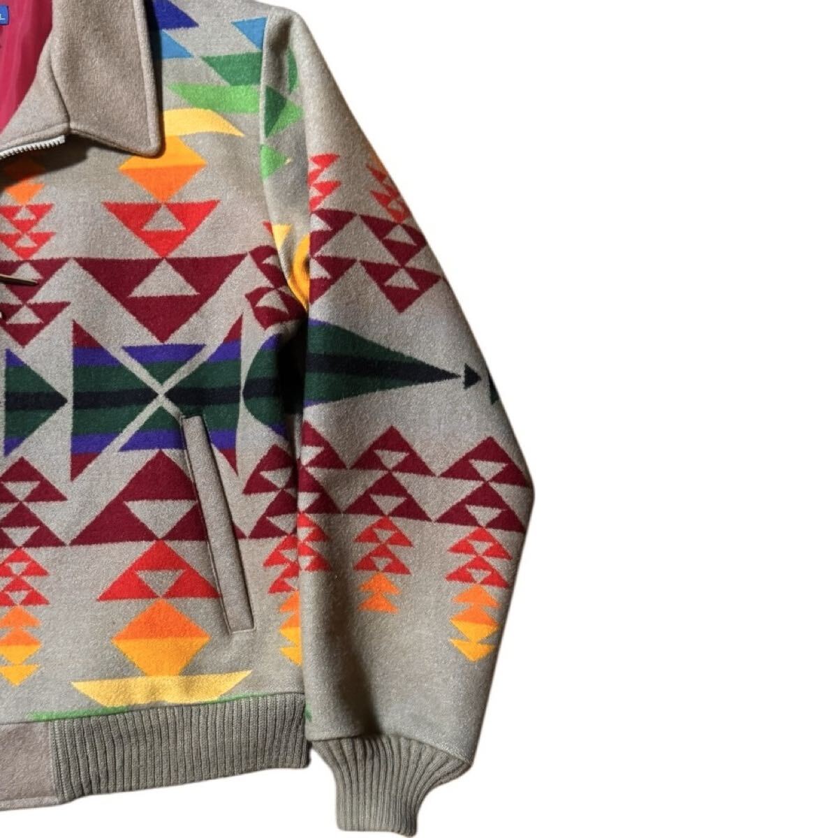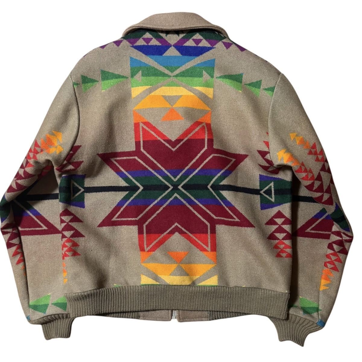 PENDLETON ビンテージ USA製 HIGH GRADE WESTERN WEAR ネイティブ 大判 ブランケットジャケット レインボーカラー 短丈 ウールブルゾン Mサイズ