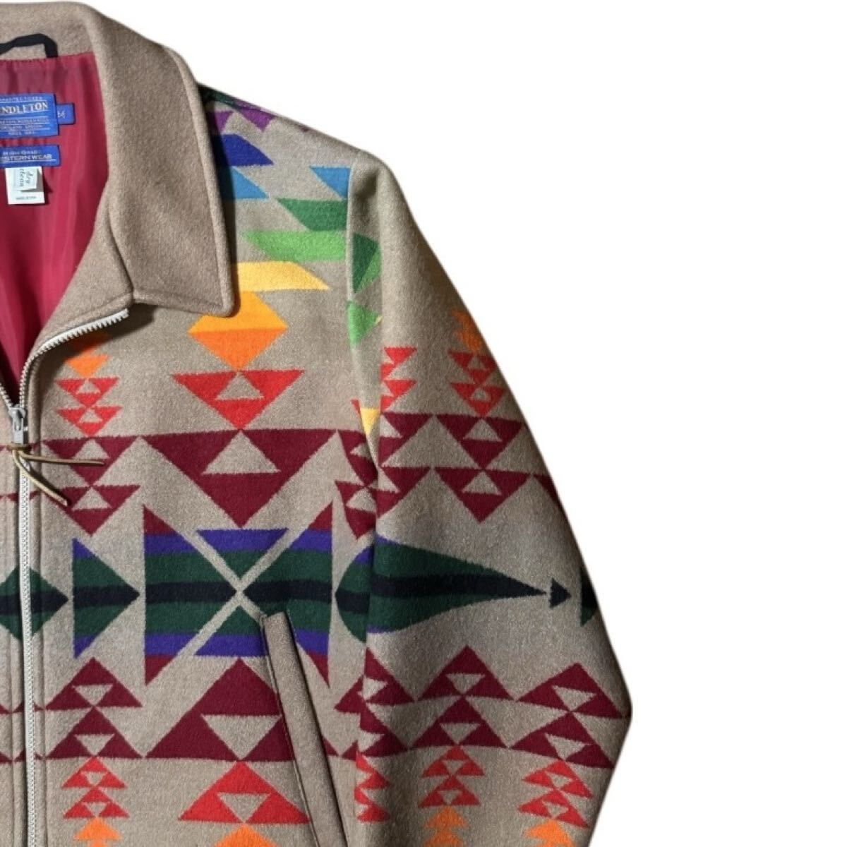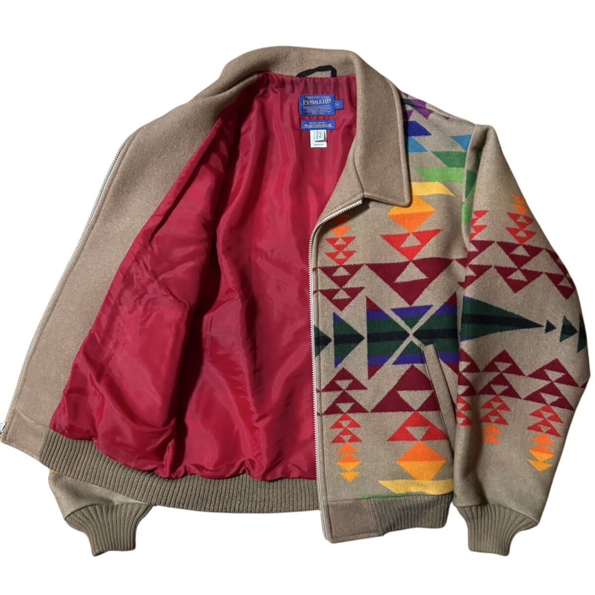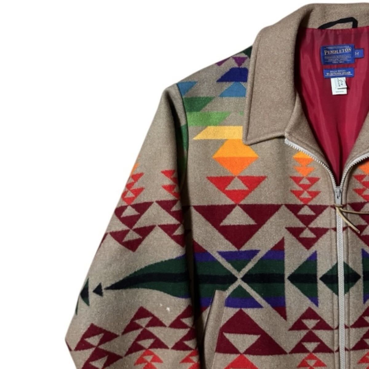PENDLETON ビンテージ USA製 HIGH GRADE WESTERN WEAR ネイティブ 大判 ブランケットジャケット レインボーカラー 短丈 ウールブルゾン Mサイズ
