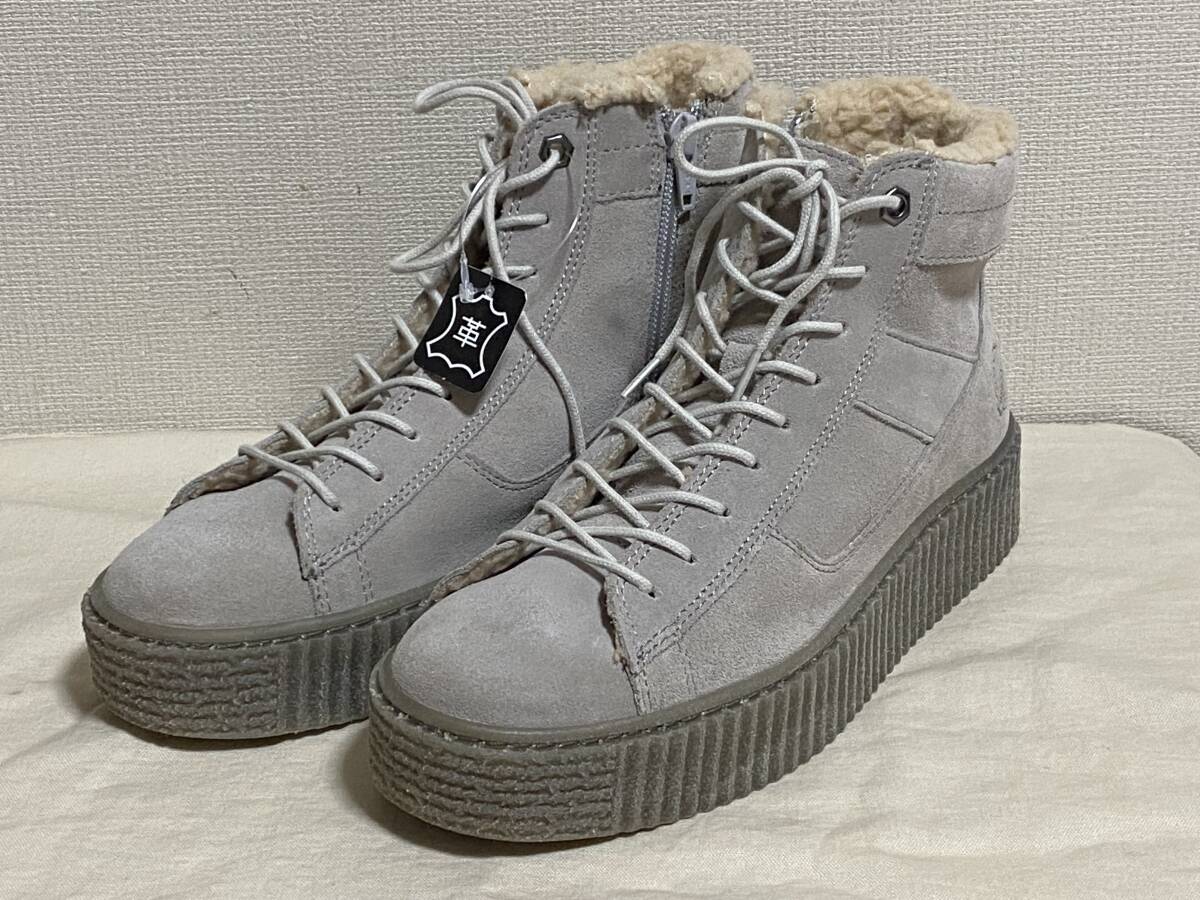 未使用【KLONDIKE/クロンダイク】 婦人本革製ハイカットスニーカー アッパーに天然皮革を使用し 上品な印象に仕上げたカジュアルブーツ 片側の履き口はファスナータイプなので 脱ぎ・履きも楽々 履き口やベロの裏などは 暖かなファーの作りとなっております ★サイズ 37(23.5cm相当) ヒール高さ:約3.5cm |