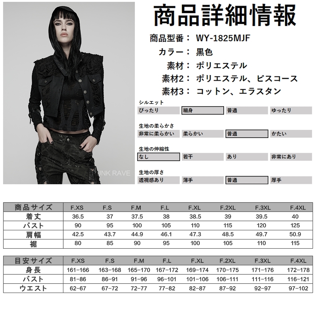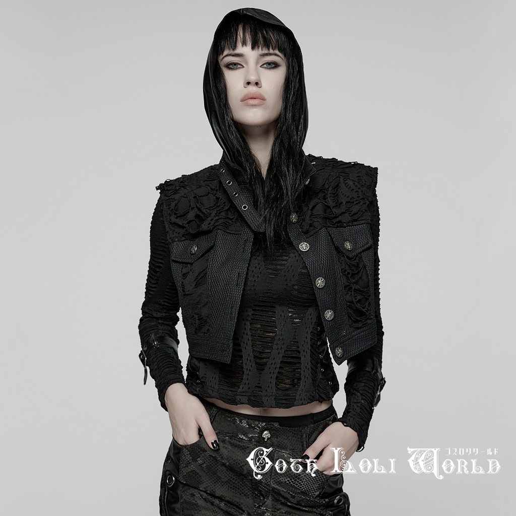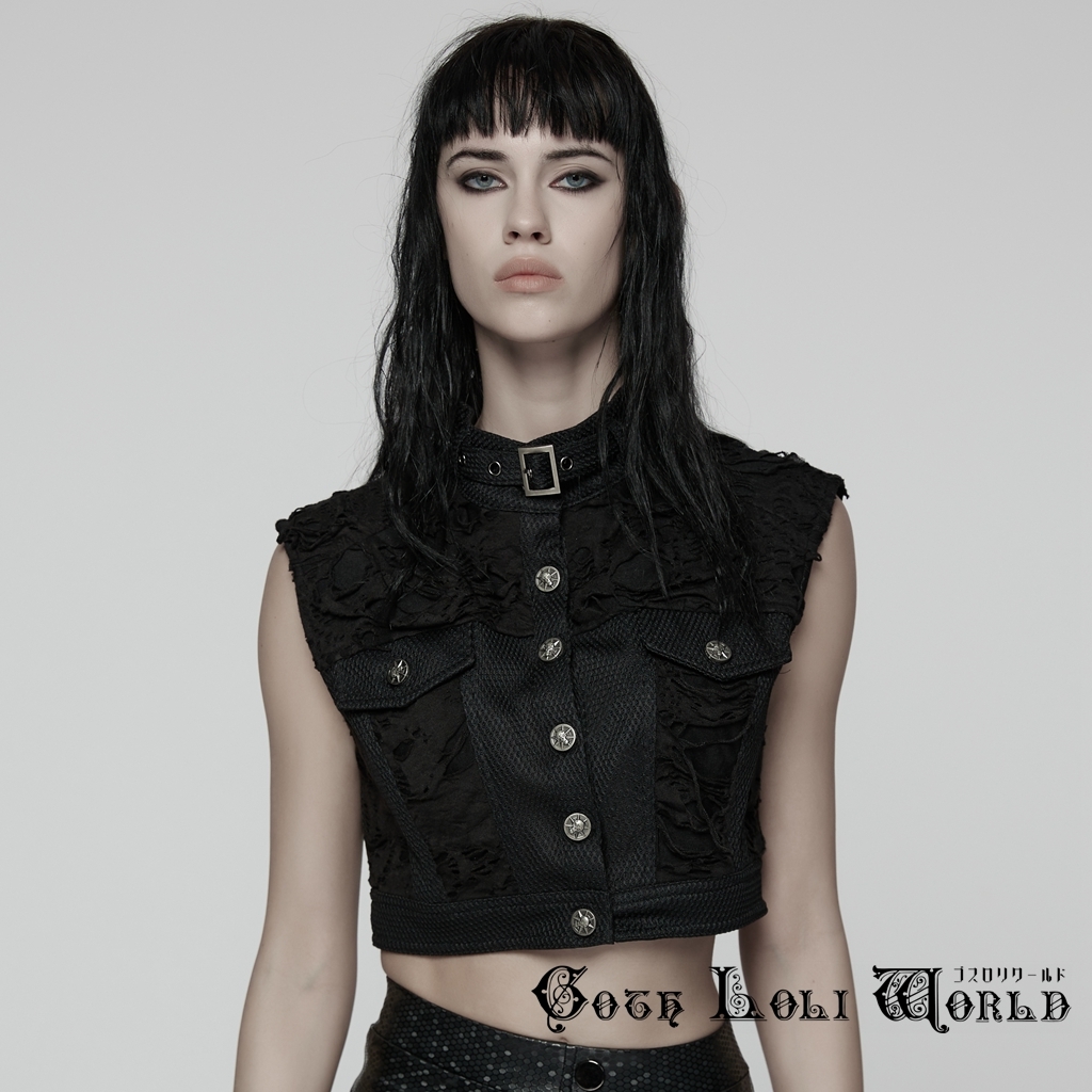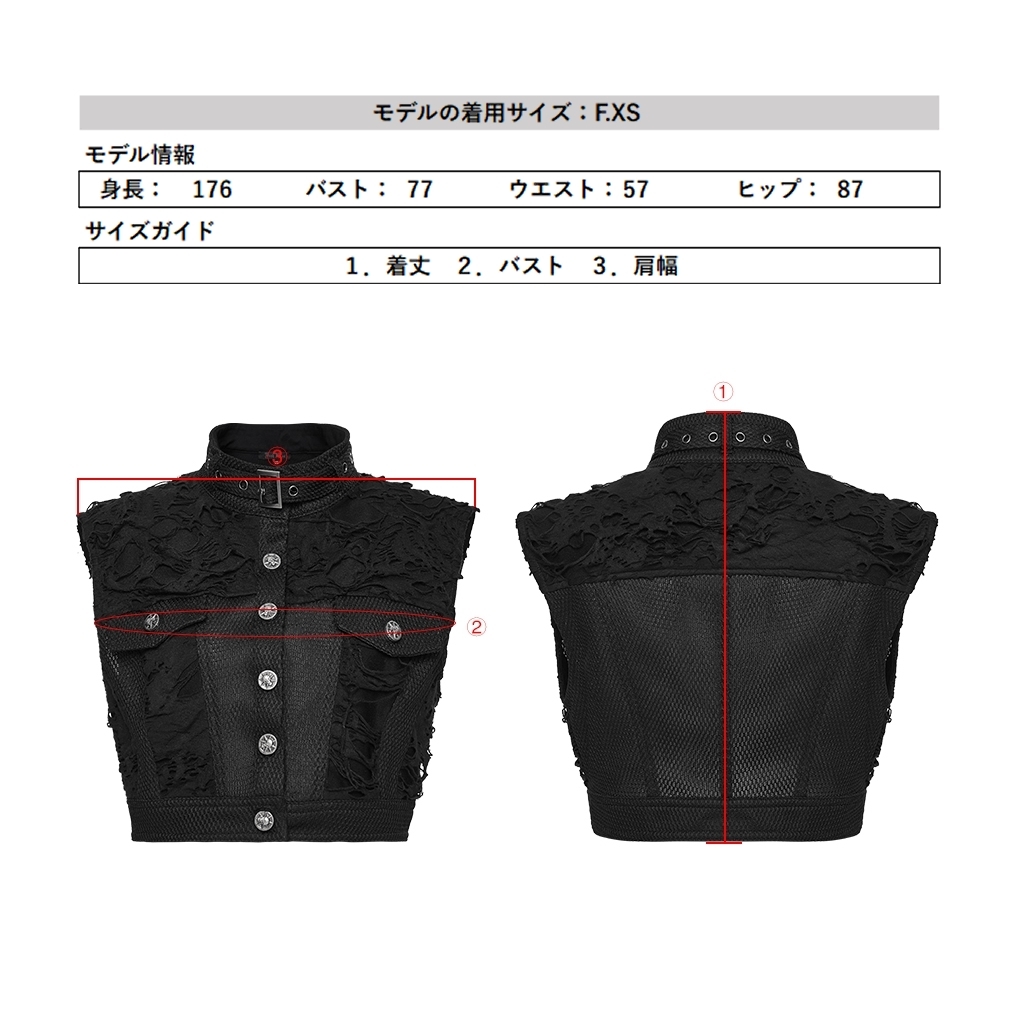 即納 WY-1825MJF-BK-S パンク ロック ファッション ダメージ風 ショート丈 ベスト ジャケット ライブ衣装 舞台衣装 ステージ衣装 イベント
