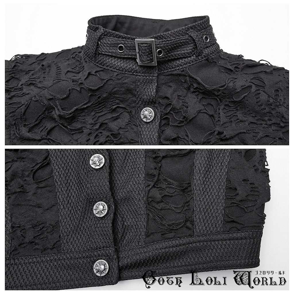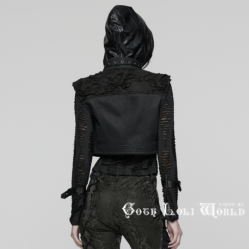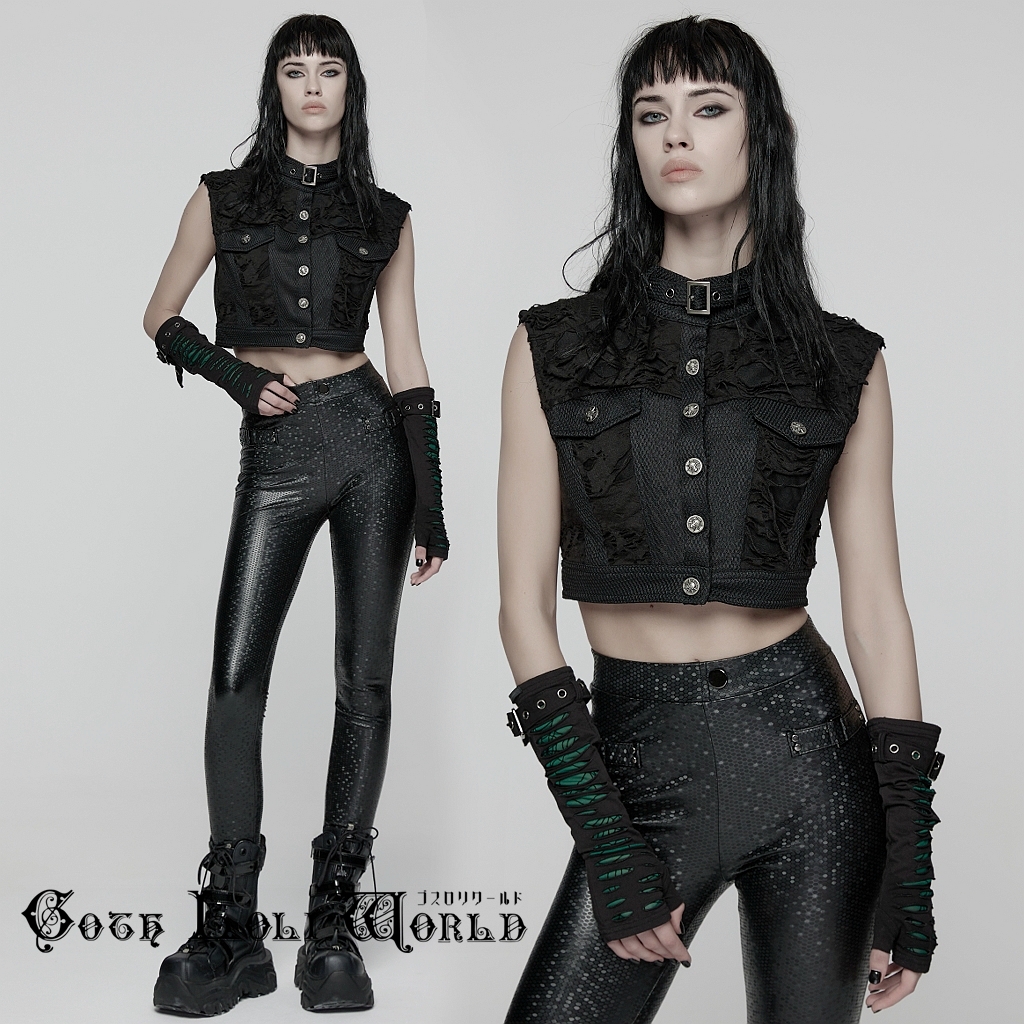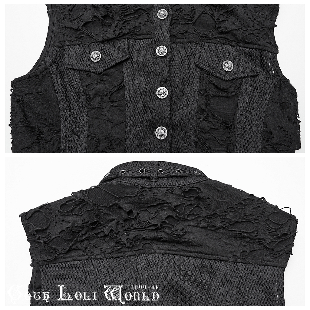 即納 WY-1825MJF-BK-S パンク ロック ファッション ダメージ風 ショート丈 ベスト ジャケット ライブ衣装 舞台衣装 ステージ衣装 イベント