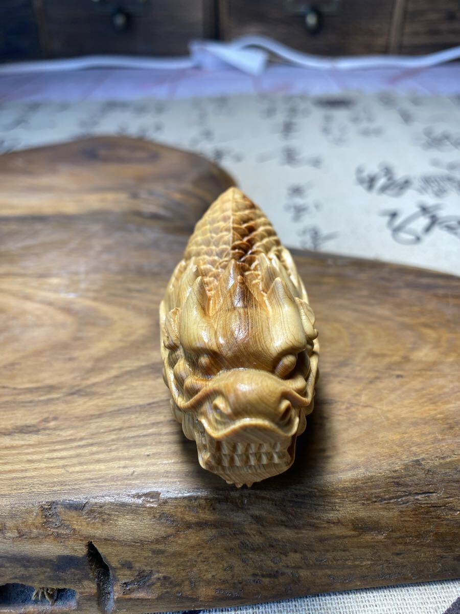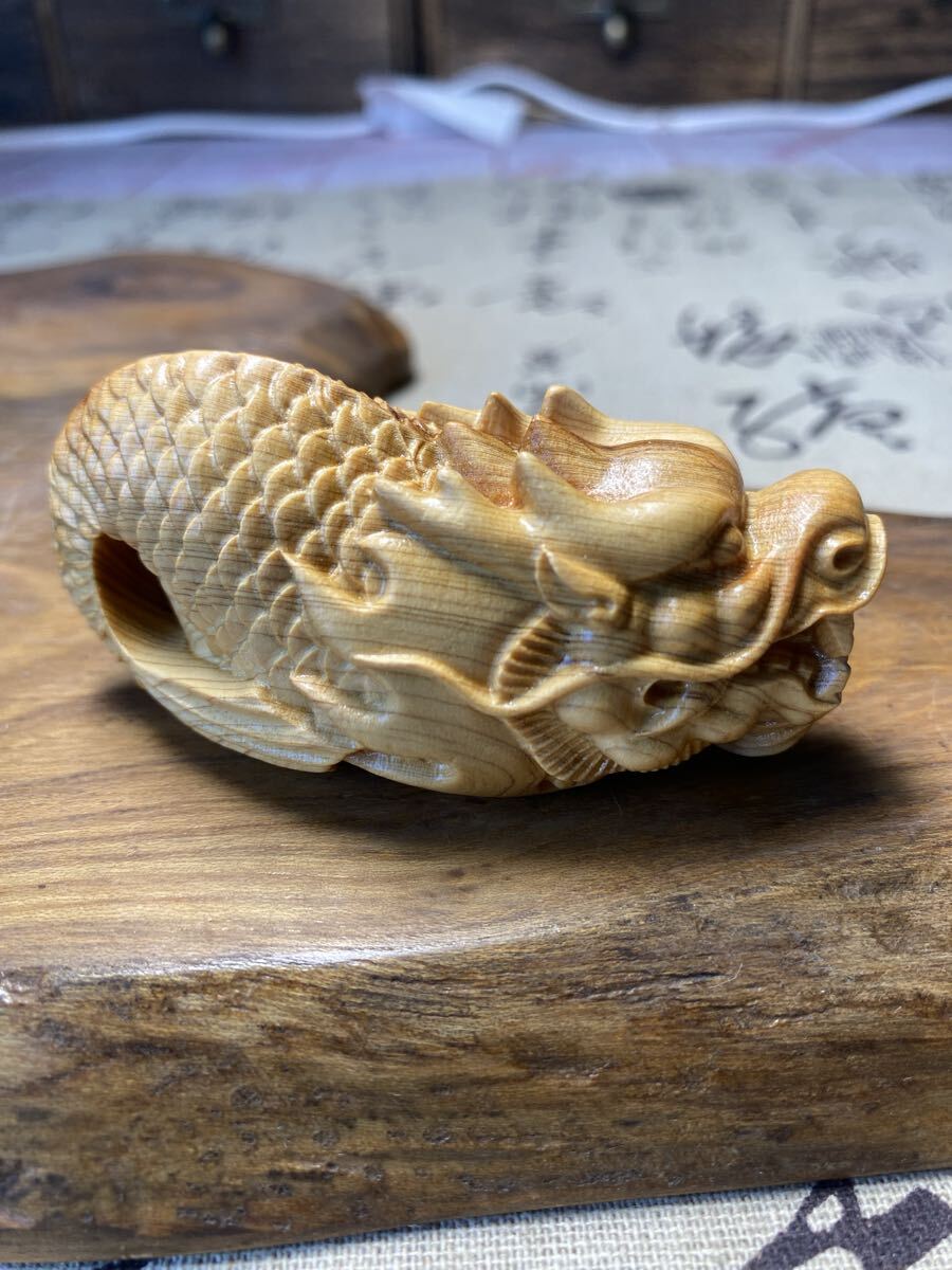 送料無料 高級木彫 龍魚 ナチュラル/天然木製/ハンドメイド/細工彫刻 開運風水厄除け 彫刻 龍
