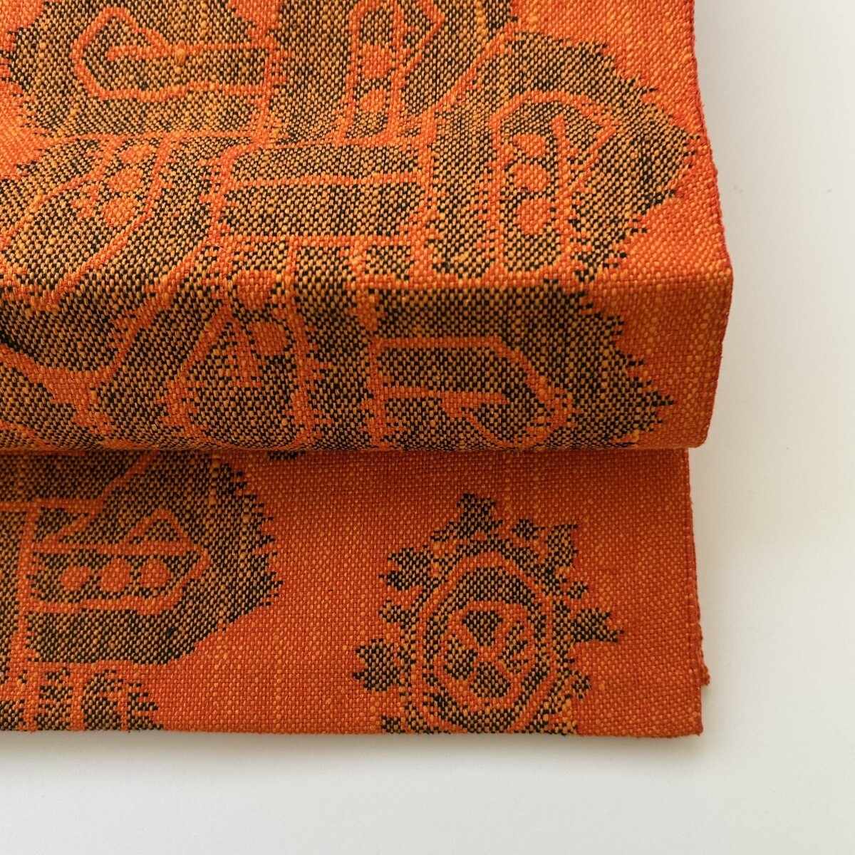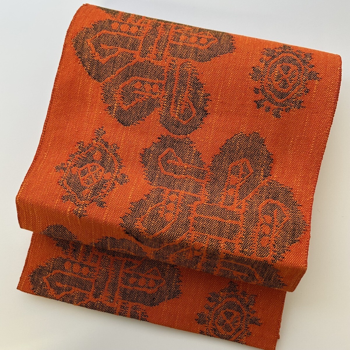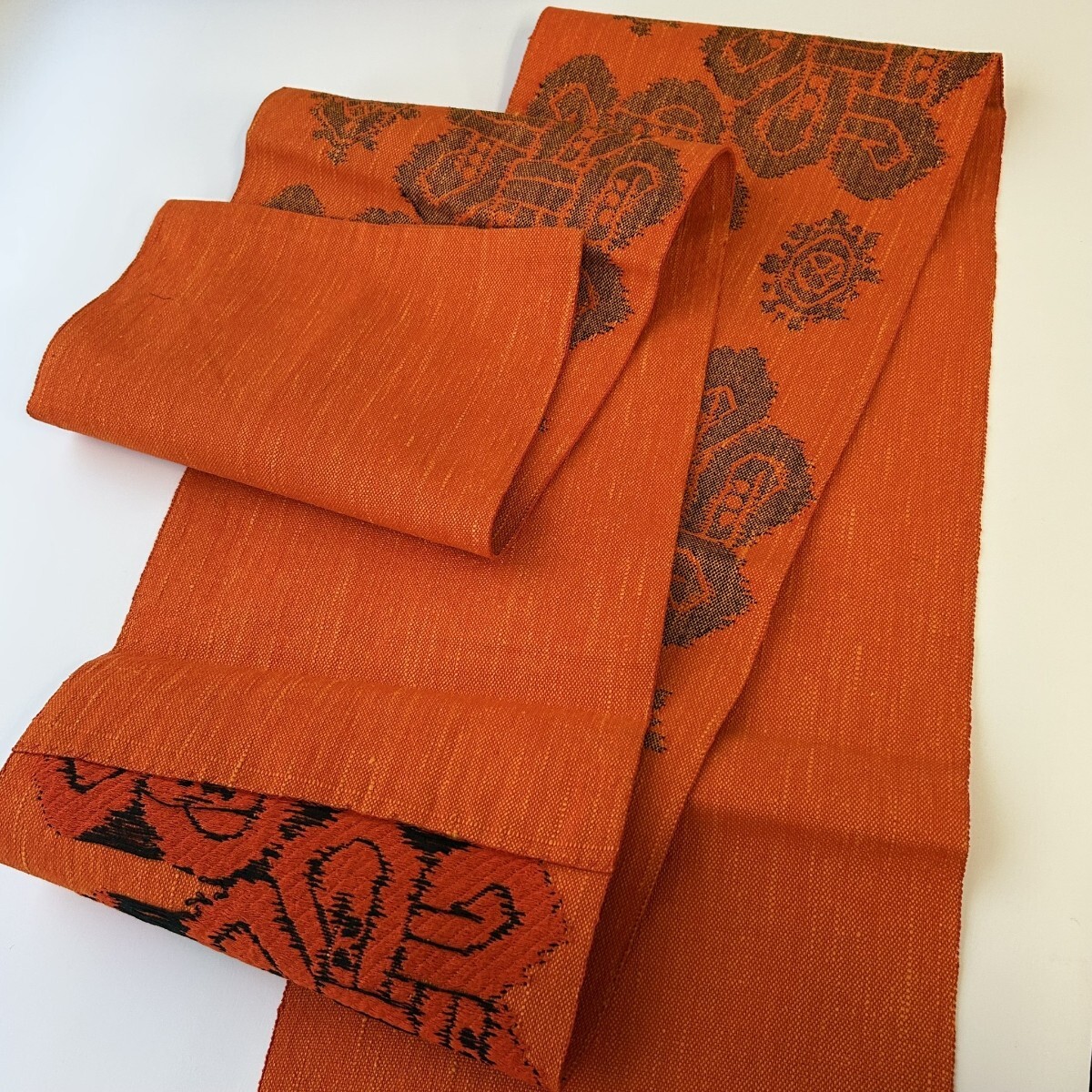 【楓】真綿紬 名古屋帯 正絹 素敵な織柄 八寸 KK-1462