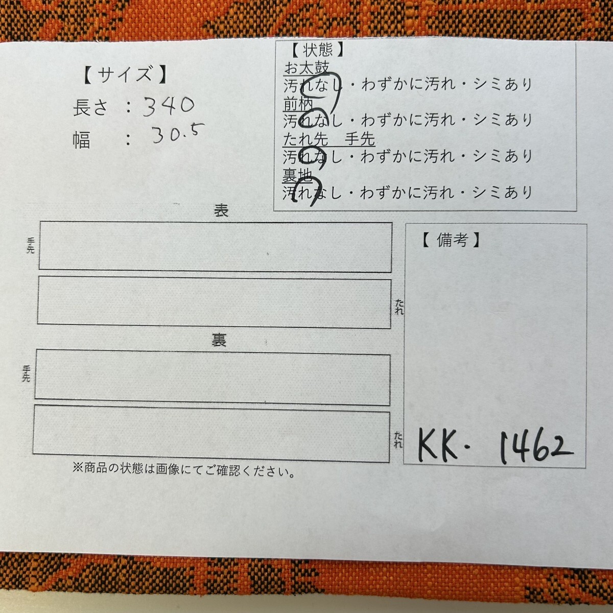 画像内に検品表を掲載しております。