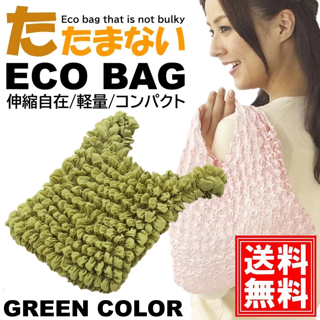 おりたたみ不要 エコバッグ 【グリーン】 おしゃれ かわいい 大容量 コンパクト レジ 袋 レディース 買い物 お出かけ ショッピング ト