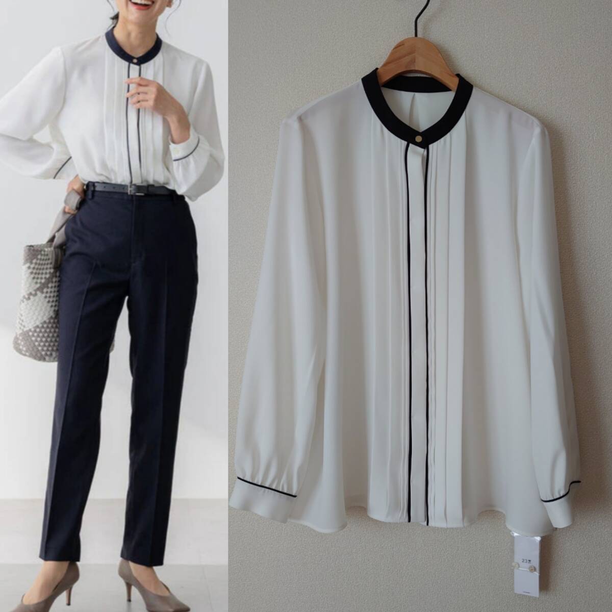 フロントのピンタックが上品で華やかな印象のブラウス。シンプルなボトムスを合わせるだけで、