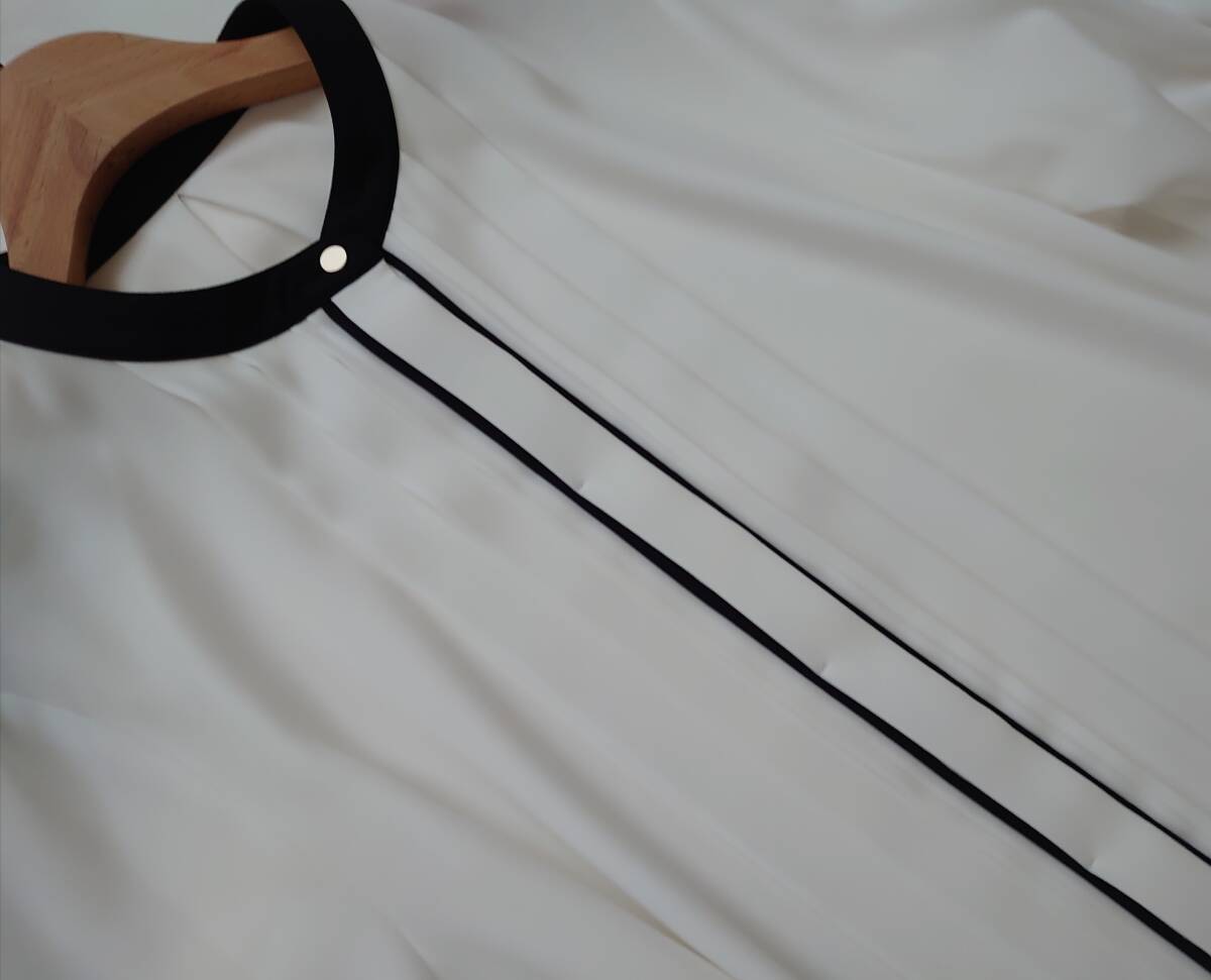 新品◇ 23区 40号 【吸水速乾/UVケア/洗える】ストレッチクリアサテン バイカラー ブラウス