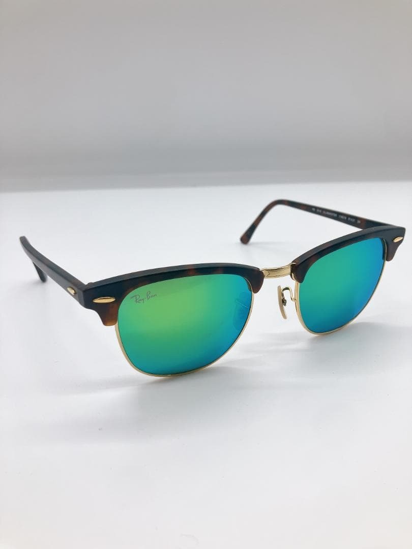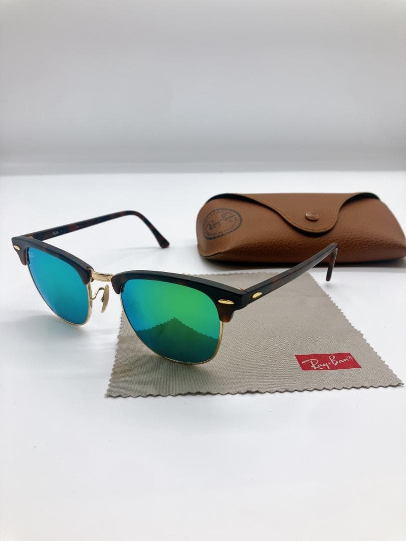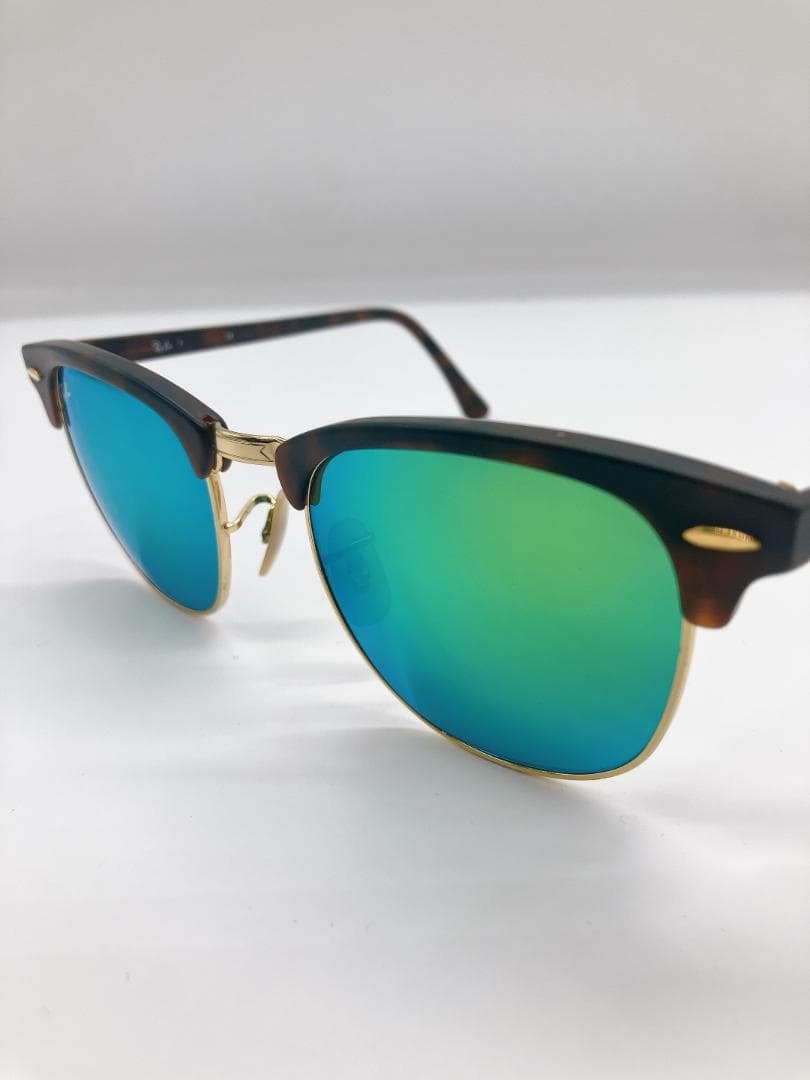 Ray-Banのブラックとトータスのフレームにグリーンミラーのレンズが特徴的なサングラス。