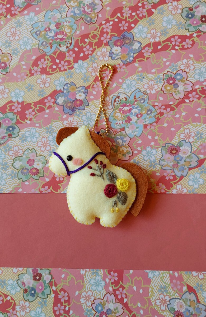 ハンドメイド*フェルトの干支ストラップ39*手刺繍~縁起物~午年*馬~プレゼント~薔薇~リース・タペストリー素材~飾り~お正月