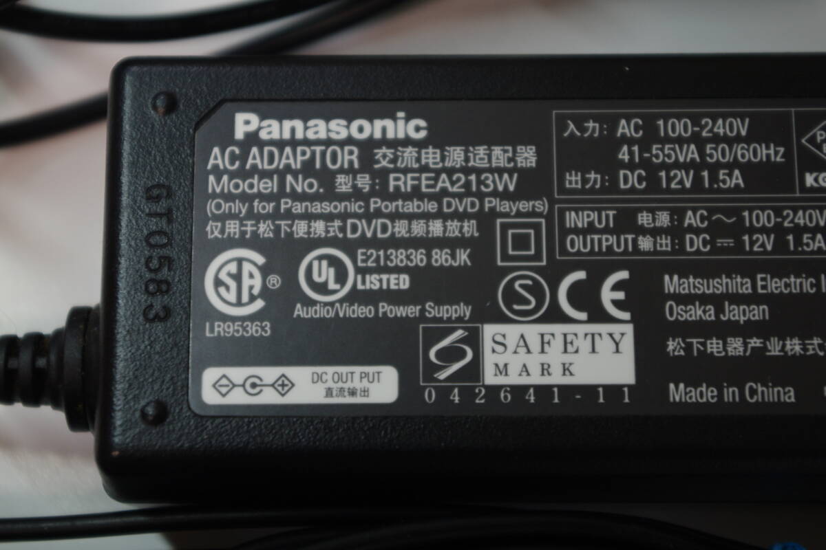 パナソニック DVD-LX95用 純正アダプタ RFEA213W DC12V 1.8A