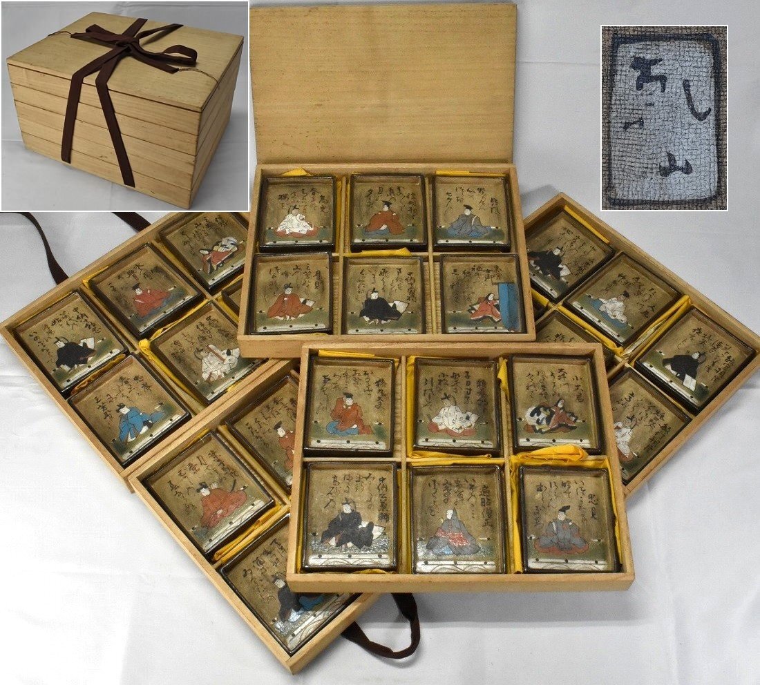 尾形乾山写 色絵 百人一首和歌 歌留多 皿 50客 共箱 J735 |
