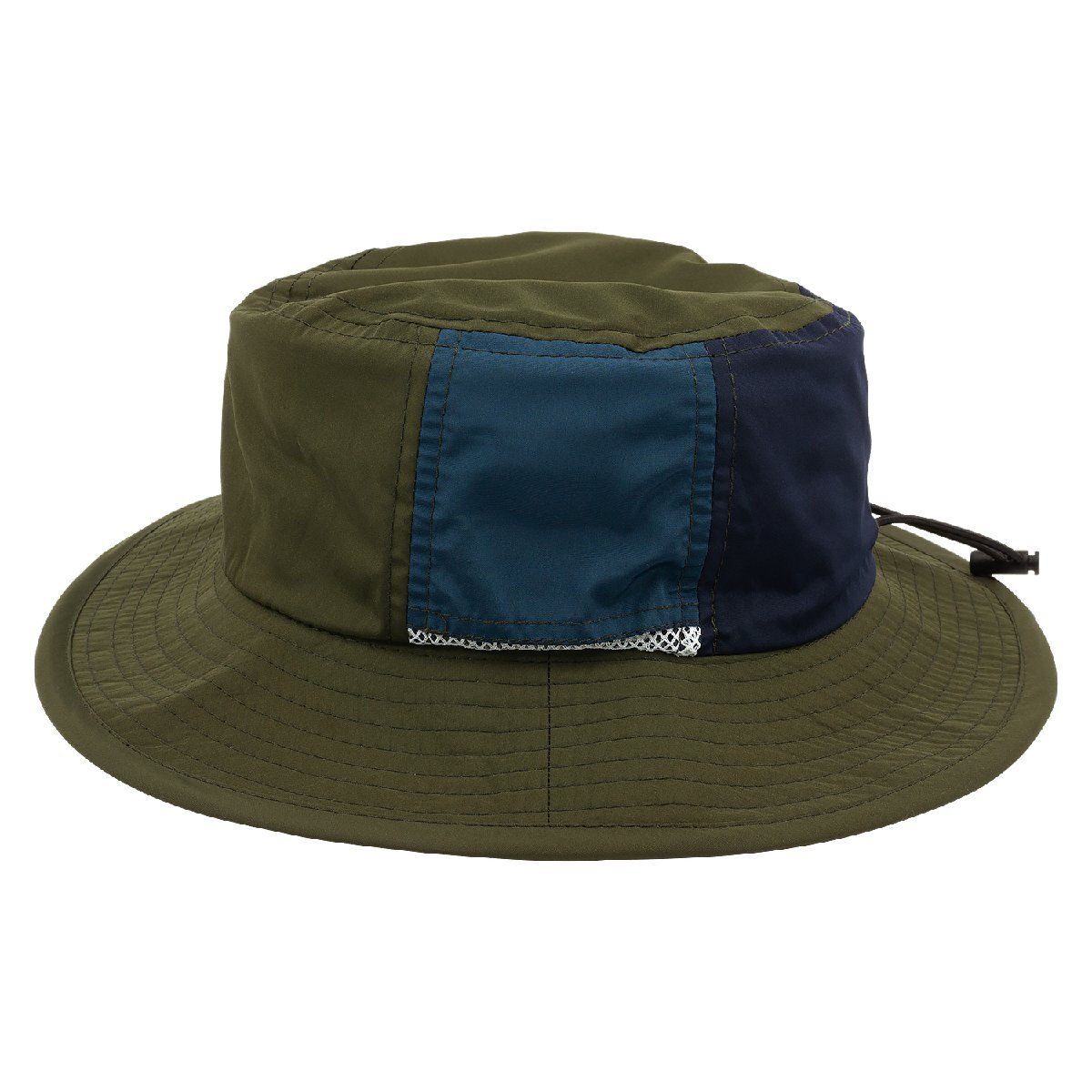 ■両サイドには蒸れを軽減するメッシュ生地のワンポイントが入っているので、通気性も心配ありません。表側に撥水生地をかぶさるように付けているため、差し色のラインのようにメッシュ生地が見えます。