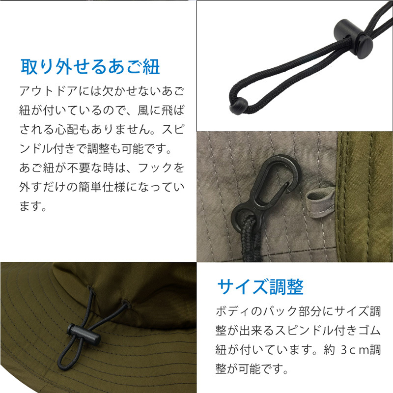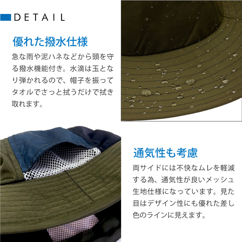 ■吸水速乾素材なので汗をかいてもサラっと快適な被り心地で、お子様も大満足のサファリハットです。