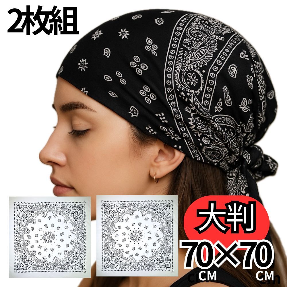 【商品説明】70×70cmのバンダナ2枚組、UV対策や多用途に最適。